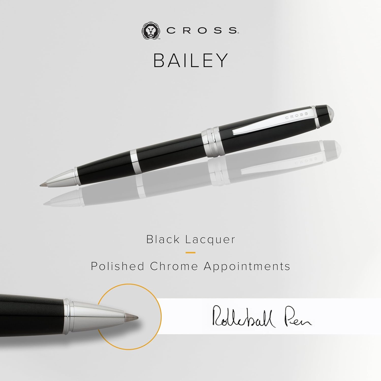 Cross Bailey Refillable Rollerball Pen Presented in a Premium Gift Box - Medium Point, Black Ink, Black