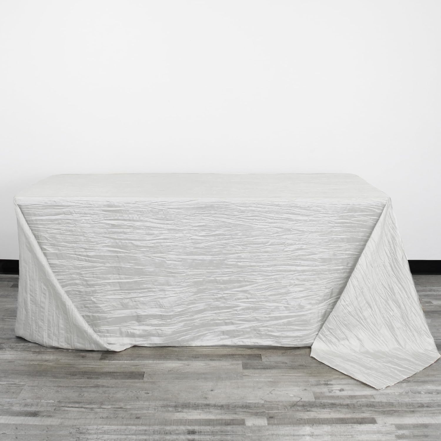 YOUR CHAIR COVERS - 90 x 132 Inch 6ft White Rectangular Crinkle Taffeta Tablecloth – Elegant Table Linen for Rectangular Tables, Weddings & Special Events