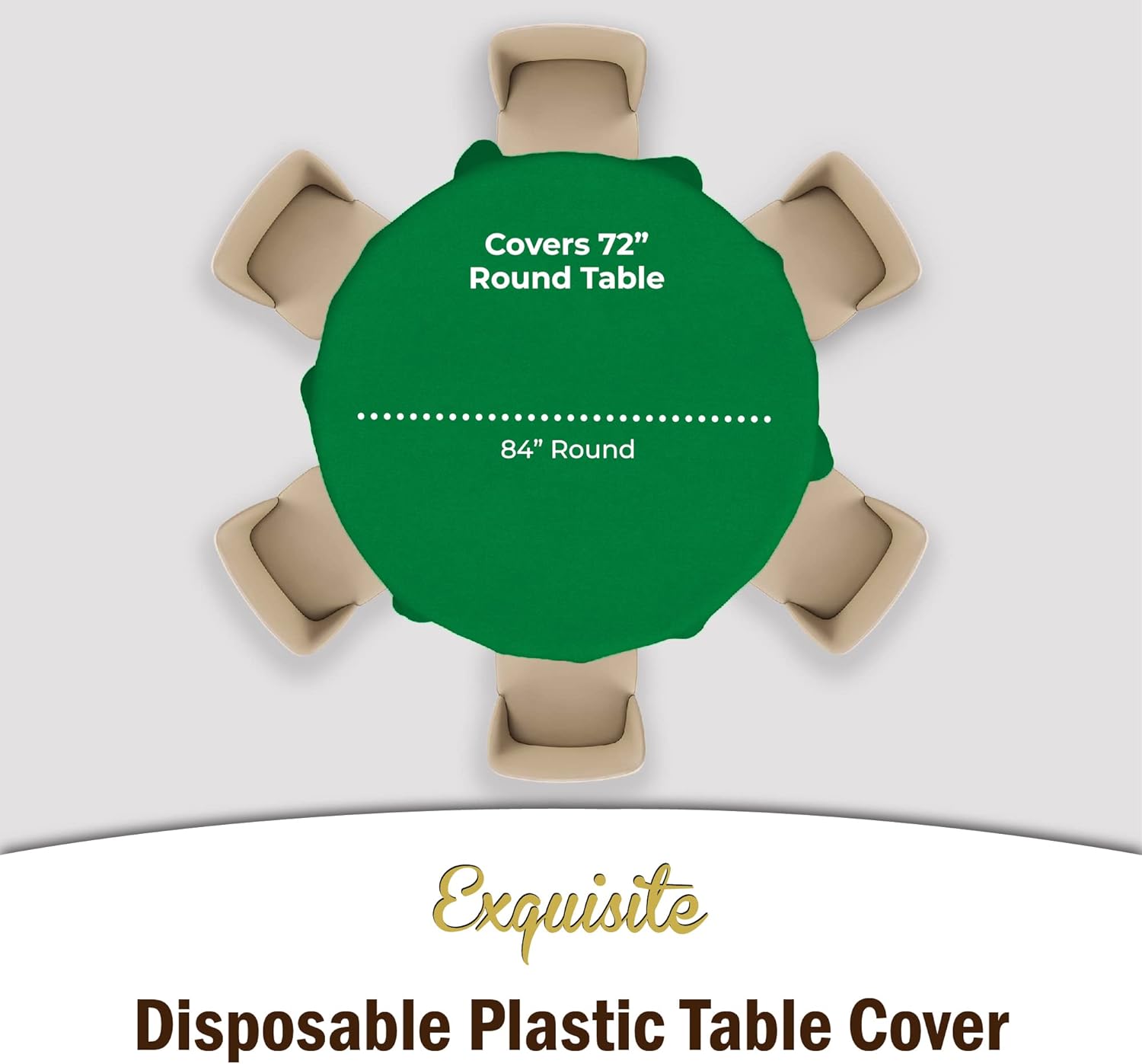 - PREMIUM QUALITY PROTECTION: This 12 pack of 84 in. Emerald Green Round plastic tablecloths will cover any table up to 7 feet. Unlike your typical paper table clothes these disposable table covers for parties are spill and waterproof!!!