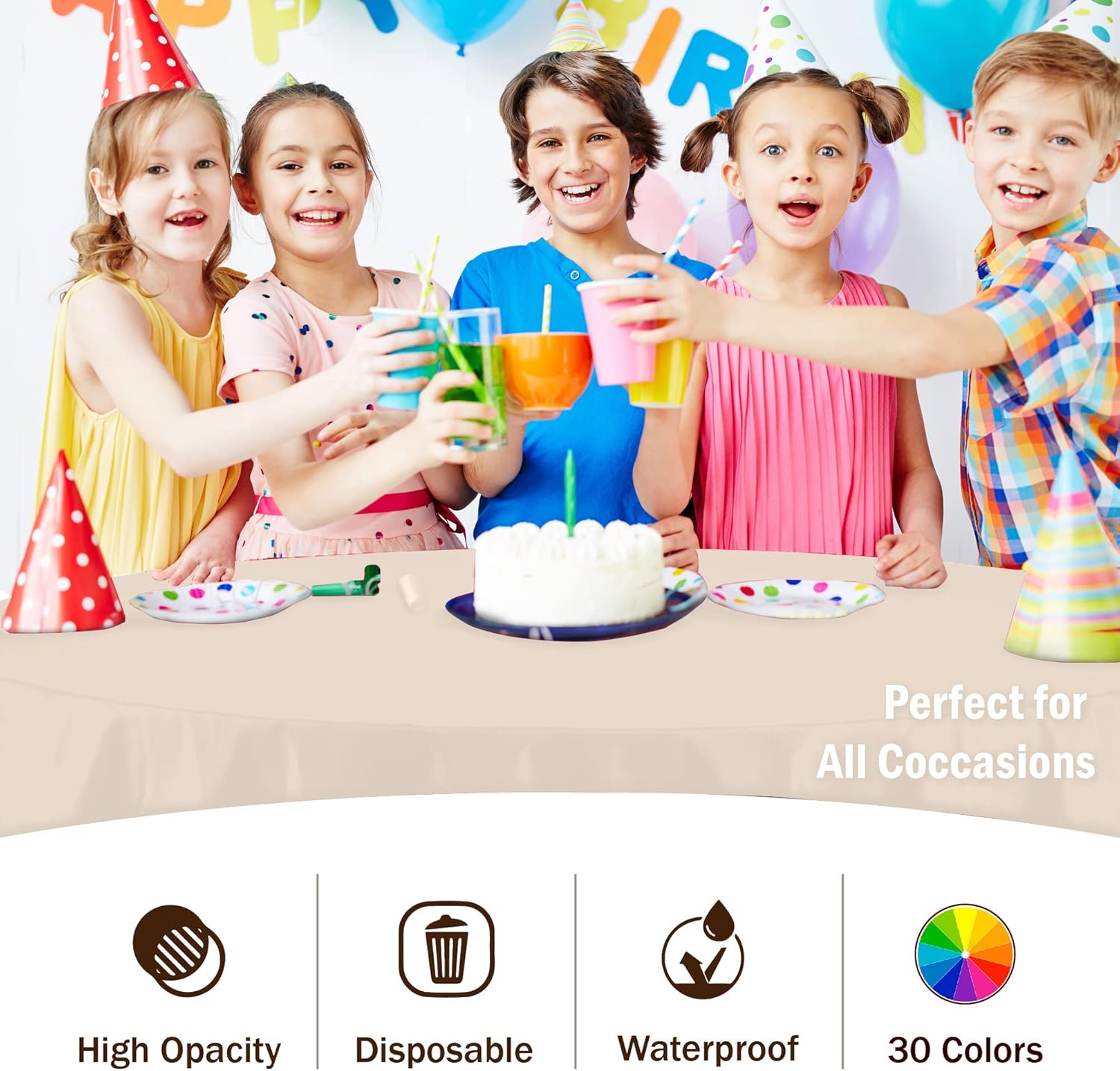 - HIGH OPACITY: covers any table with minimal transparency. Great plastic tablecoth for parties, weddings, holdiay party, , birthday parties, christmas, thanksgiving dinner, bbq, and any other color themed event.
