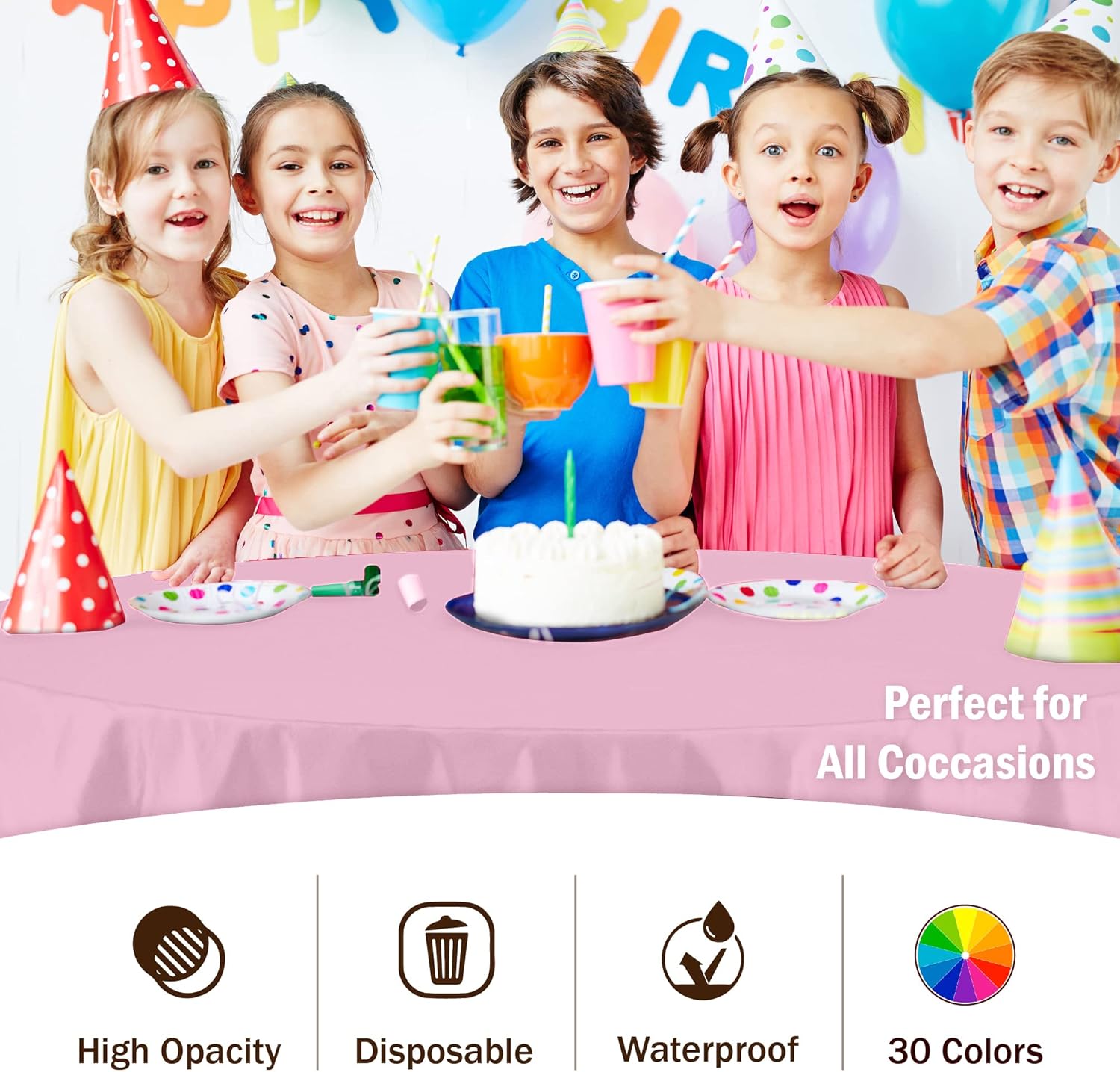 - INCLUDES: 12 heavy duty disposable Pink plastic table cloth that will cover your table for protection and is great for homes with children, kitchen tables, dinning tables, dinners, family outings. bbq's and more!!!