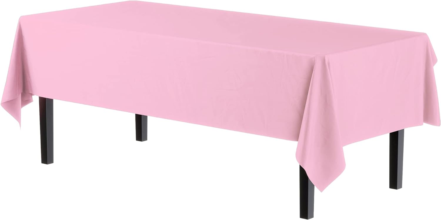 - PREMIUM QUALITY PROTECTION: This 12 pack of 54 in. x 108 in. Rectangle Pink plastic tablecloths will cover any table up to 8 feet. Unlike your typical paper table clothes these disposable table covers for parties are spill and waterproof!!!