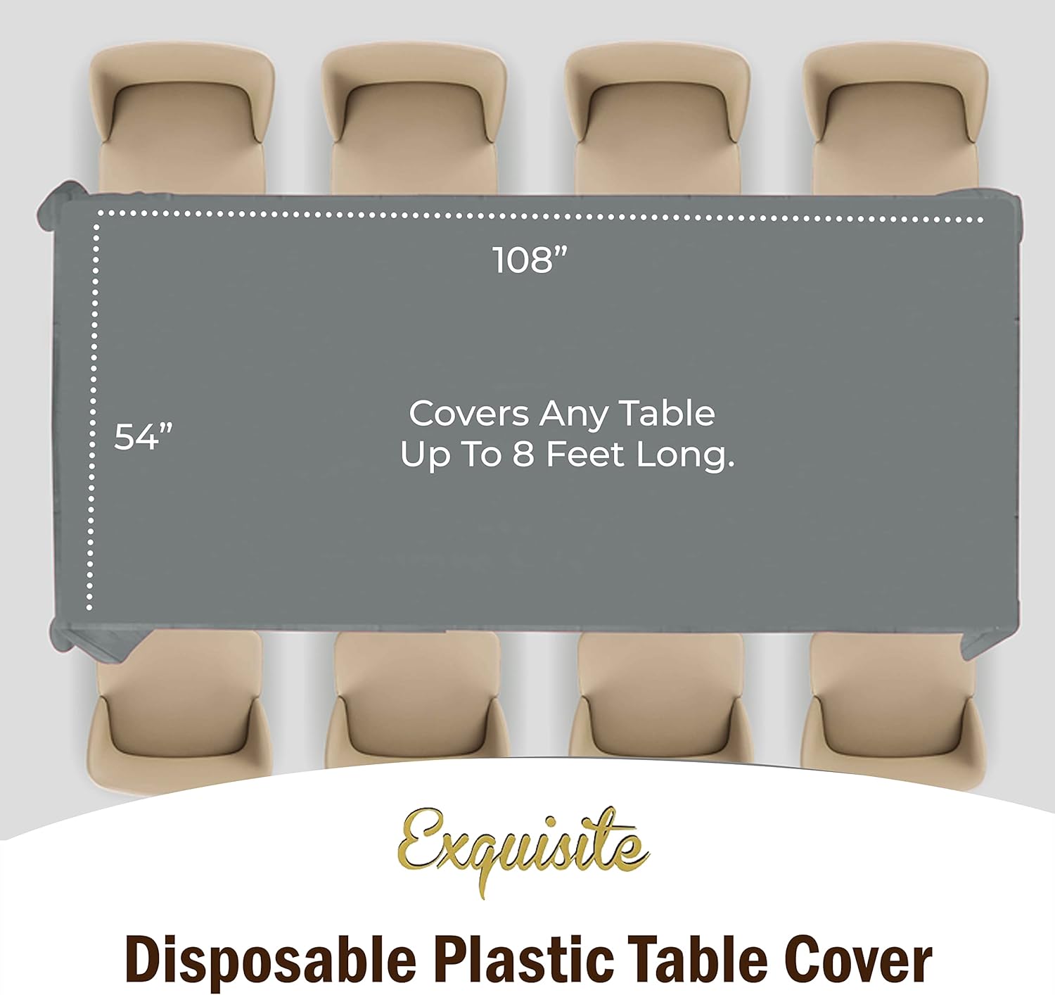 Exquisite 12-Pack Premium Plastic Tablecloth 54 Inch. x 108 Inch. Rectangle Table Cover - Silver