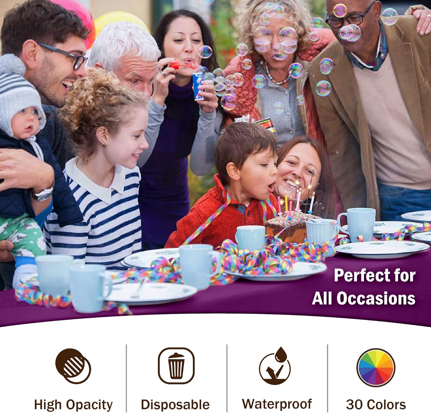 Exquisite 12-Pack Premium Plastic Tablecloth 54in. x 108in. Rectangle Table Cover - Magenta