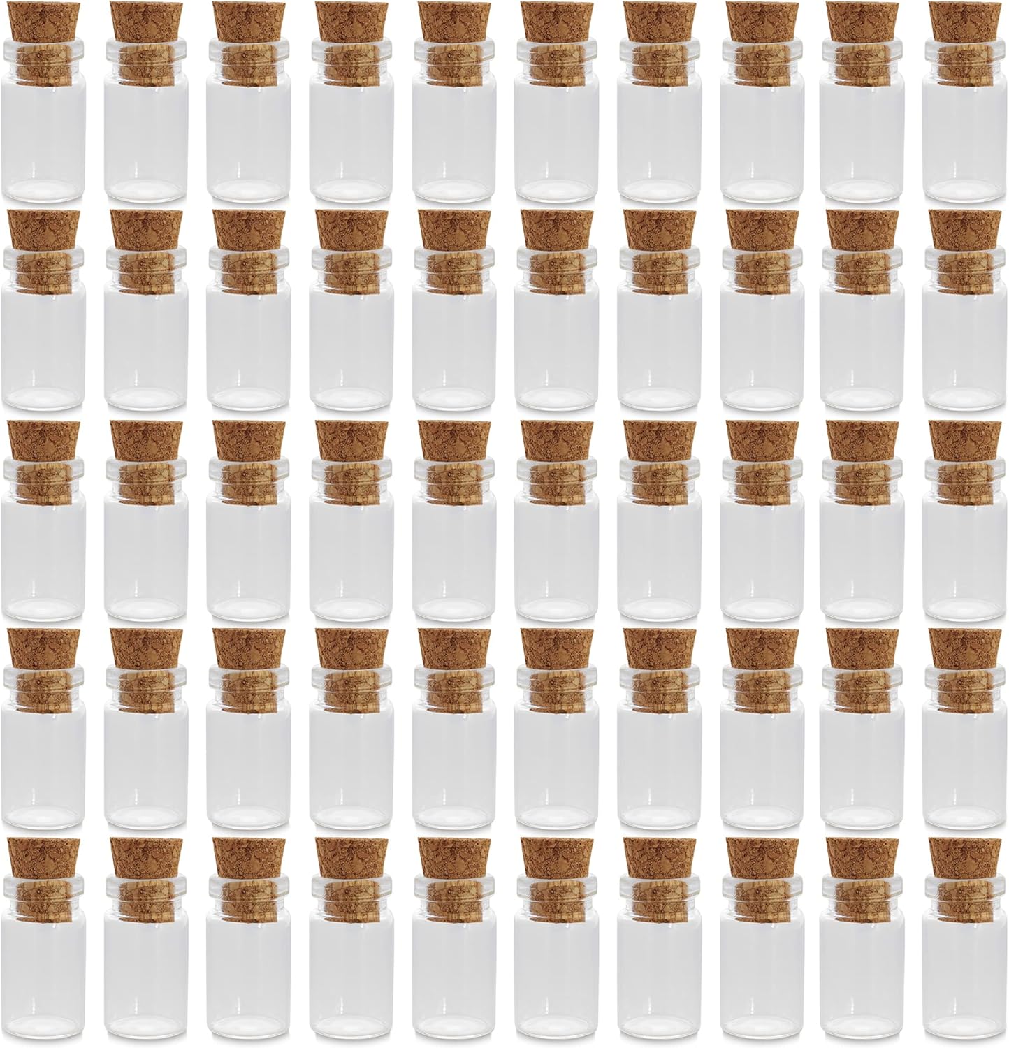 Clear Glass Jars Bottles 50 Pack Mini, Tiny, Cork Stoppers, Arts & Crafts, Projects, Decoration, Party Favors, 18mm x 10mm Diameter