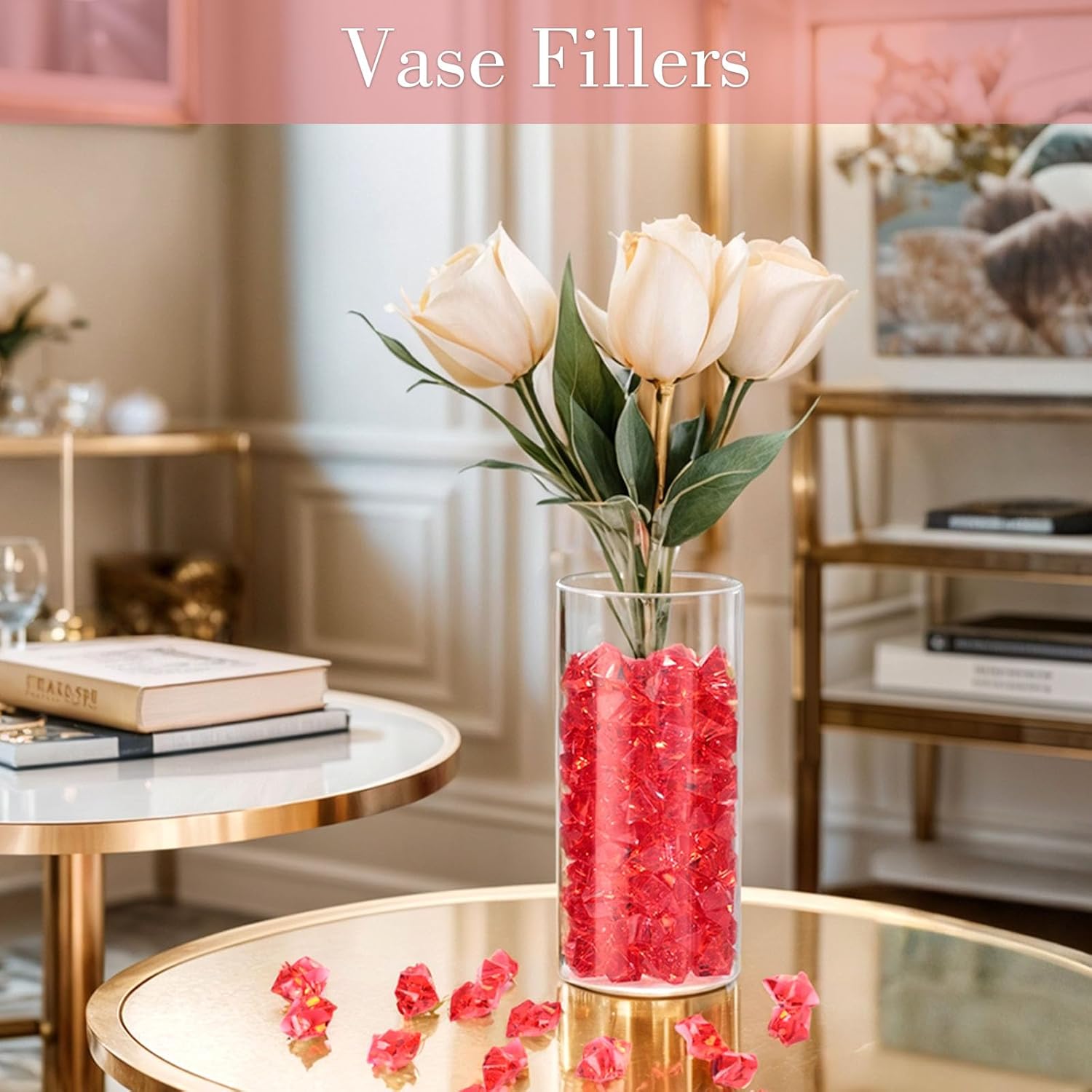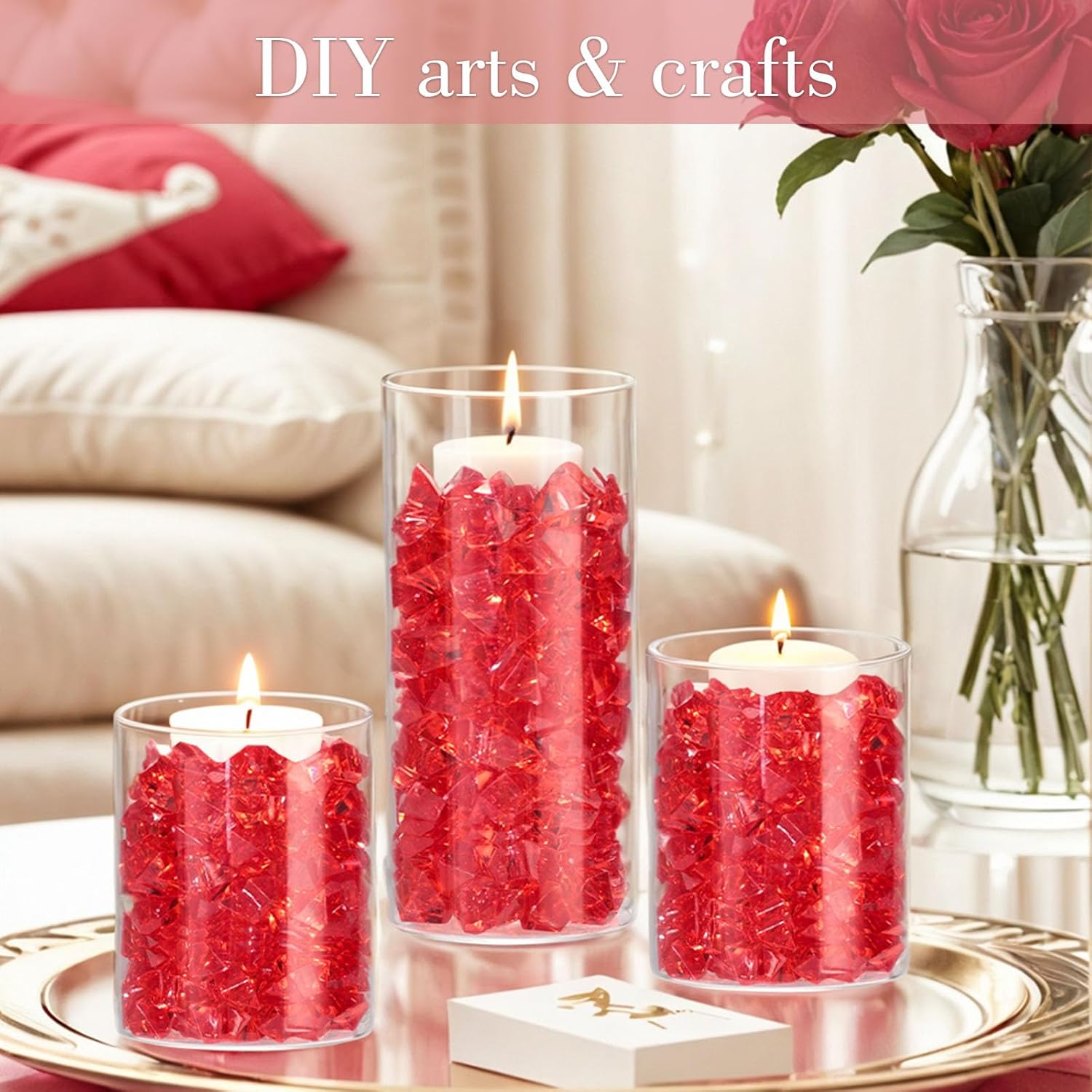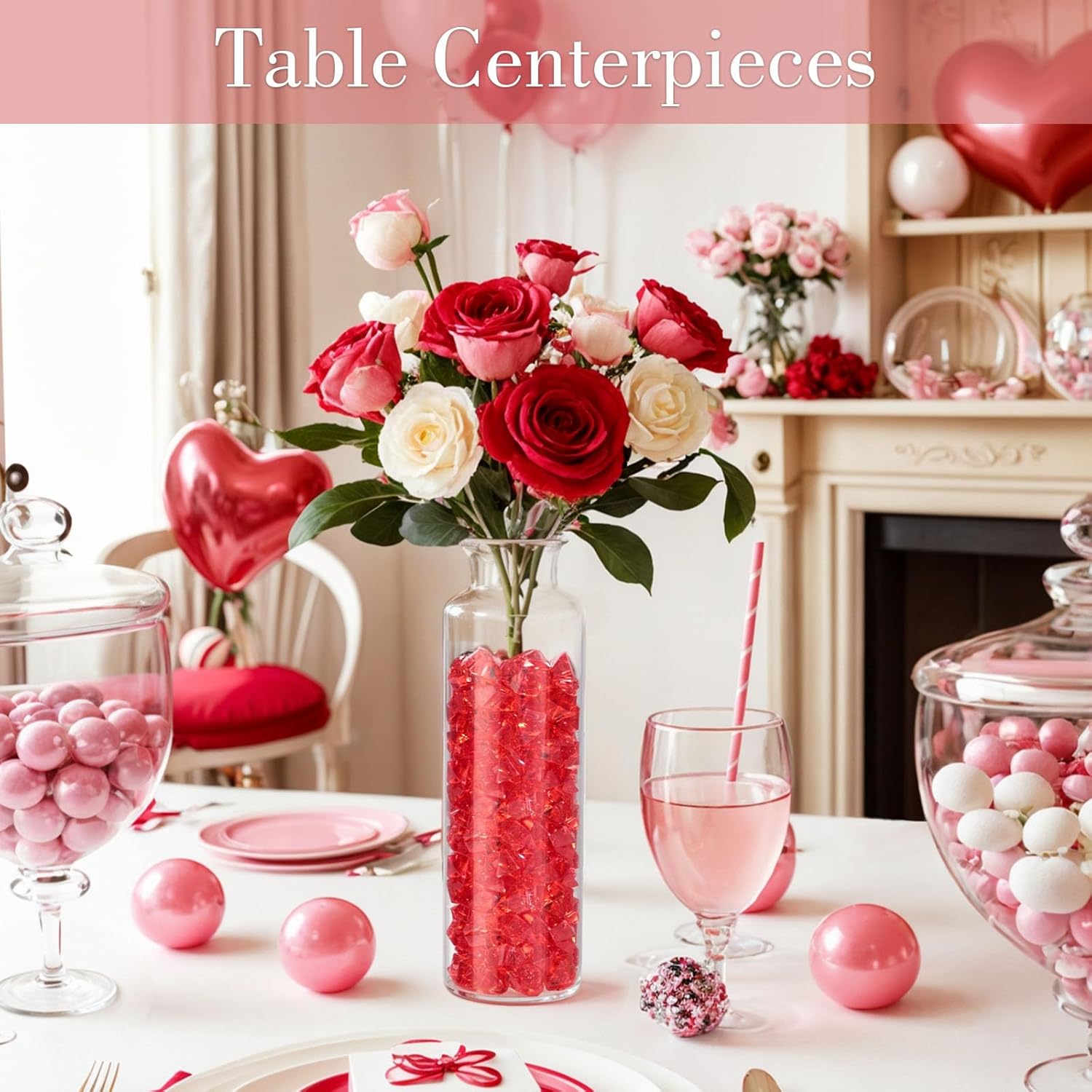 DomeStar Red Fake Ice Rocks, 150PCS Acrylic Gems Crystals Plastic Diamonds Centerpiece for Vase Fillers Wedding Party Table Scatter Decorations