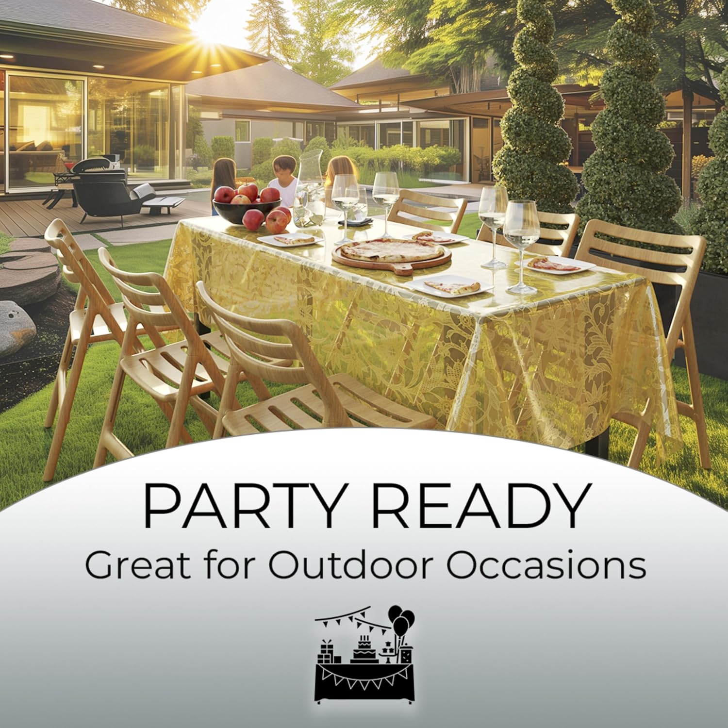 - All Occasions: Whether it's a picnic, party, or holiday gathering, these lace table cloth rectangle table covers are versatile enough for any event. Being the standard size of 8 ft table cloth rectangle table they make a great use as a picnic table cover, outdoor table cover for parties, or elegant outdoor table clothes to elevate any occasion effortlessly.