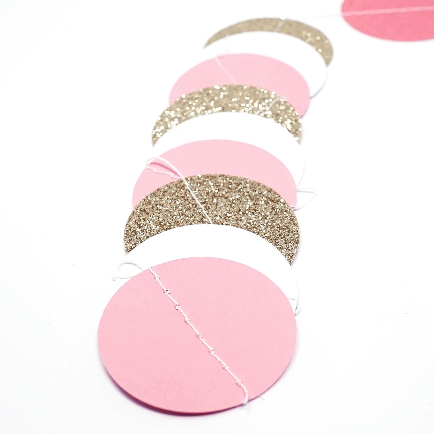 Chloe Elizabeth Circle Dots Paper Party Garland Streamer Backdrop (10-Pack, 10 Feet Per Garland, 100 Feet Total) - Pink, White, Gold Glitter