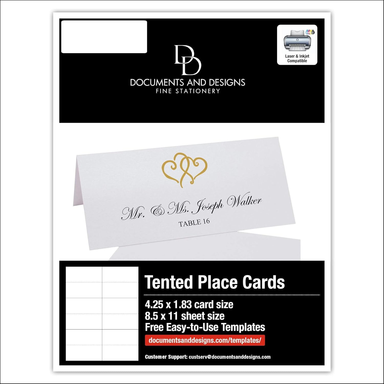 - Includes (10) 8.5x11 Sheets. (60) Individual Place Cards. Gold
