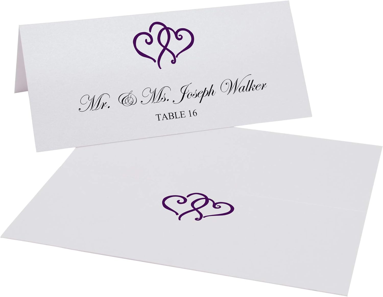 Linked Hearts Printable Place Cards, Eggplant (Choose Color), Set of 60 (10 Sheets), Laser & Inkjet Printers - Wedding, Party, Dinner, and Special Events - Made in the USA