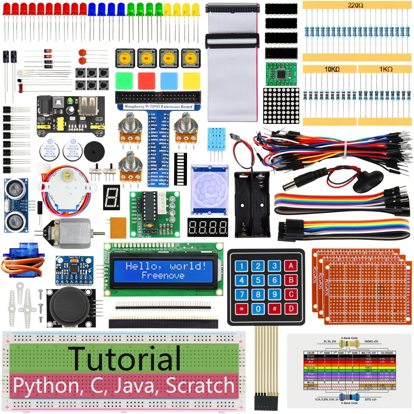 Freenove Ultimate Starter Kit for Raspberry Pi 5 4 B 3 B+ 400 Zero 2 W, 962-Page Detailed Tutorial, Python C Java Scratch Processing Code, 223 Items, 128 Projects (Raspberry Pi NOT Included)