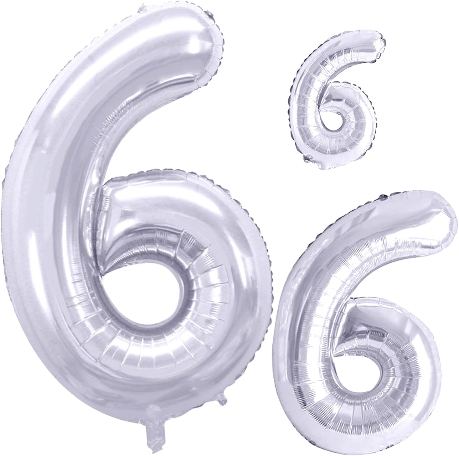 GOER Silver Foil Balloons Number 6,Huge Number Balloons for 6th Birthday Party Supplies Anniversary Decorations(3 pcs,42 inch,32 inc,16inch)