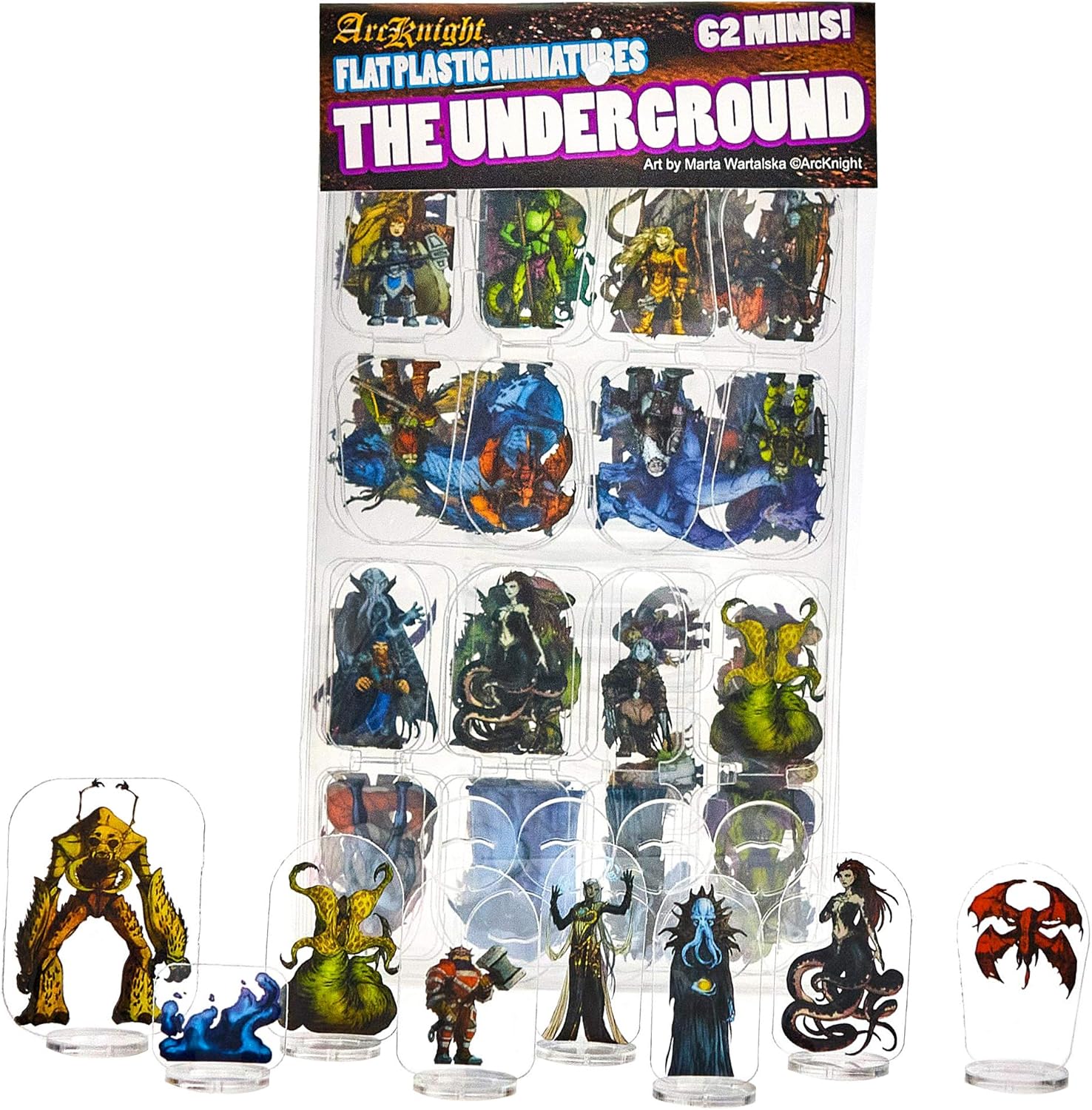 Arcknight Flat Plastic Miniatures: Underground; 62 Unique Subterranean-Themed Minis for DND 5e and Pathfinder; Affordable, Skinny Figurines for Dungeons and Dragons and Other Tabletop RPG Games