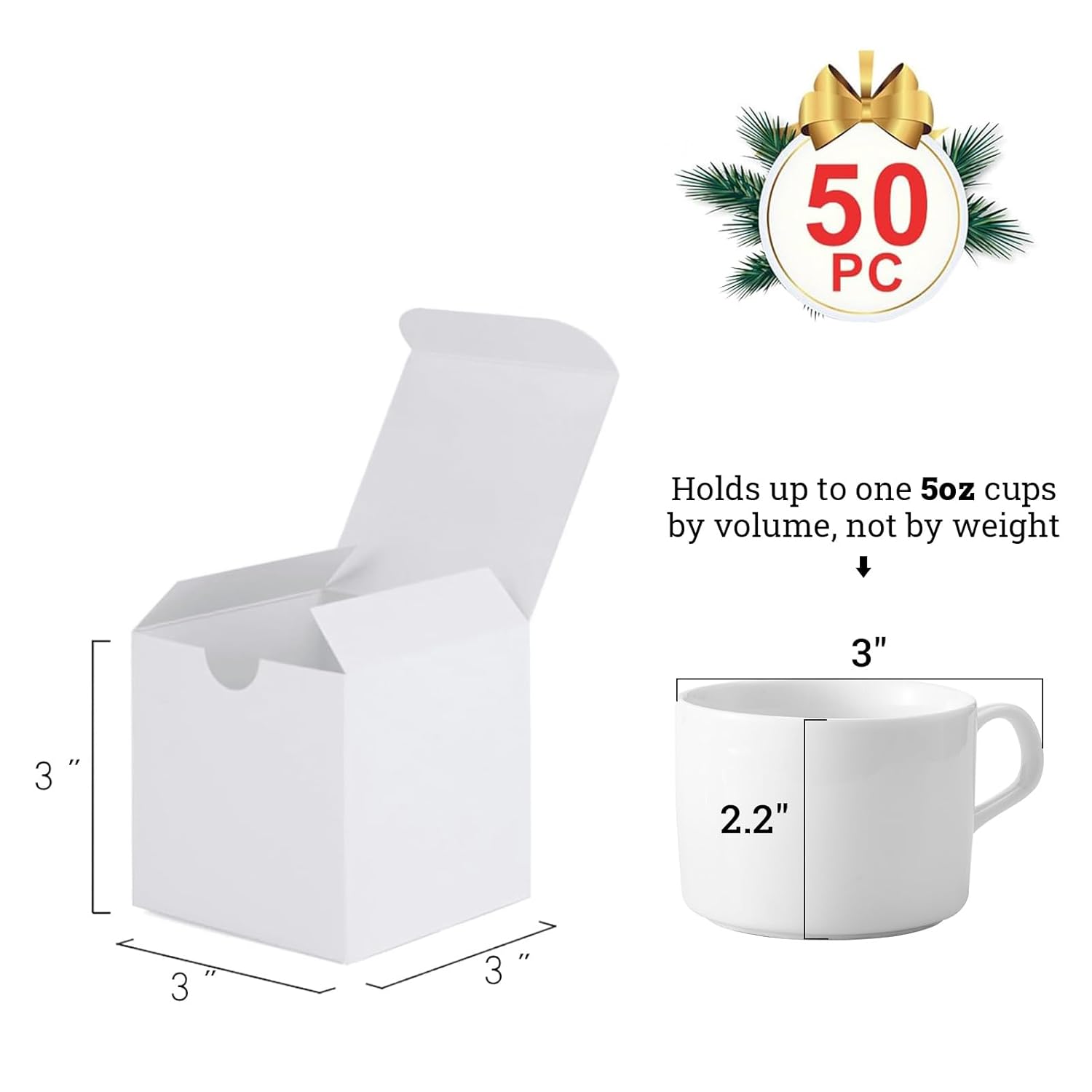 MESHA White Gift Box 50PC 3x3x3'' Sturdy Gift Boxes with Lids, Bridesmaid Proposal Gifts Box for Bridal, Cupcake, Godmother, Groomsmen Proposal Box, Party Favor, Wedding Favor