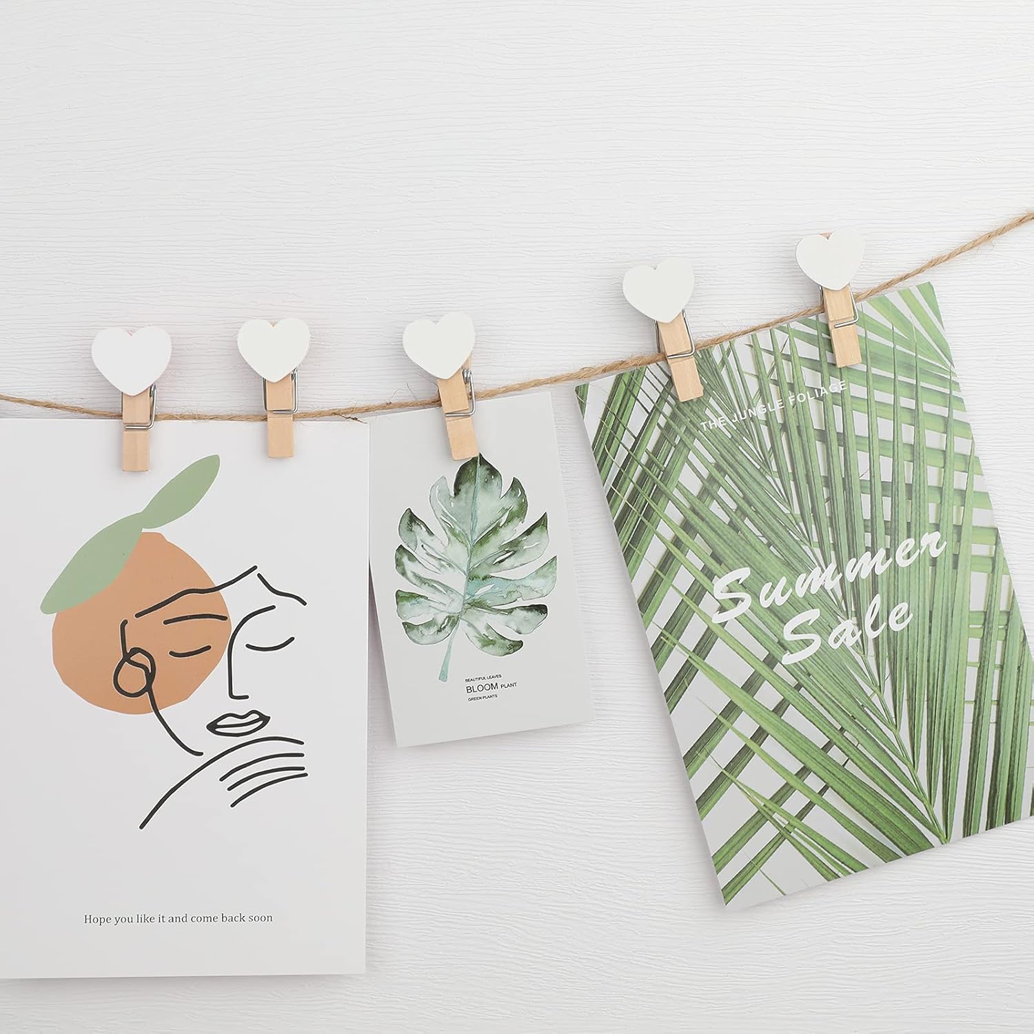 - Package content:100 Pcs White clothespins +30 meters jute twine.