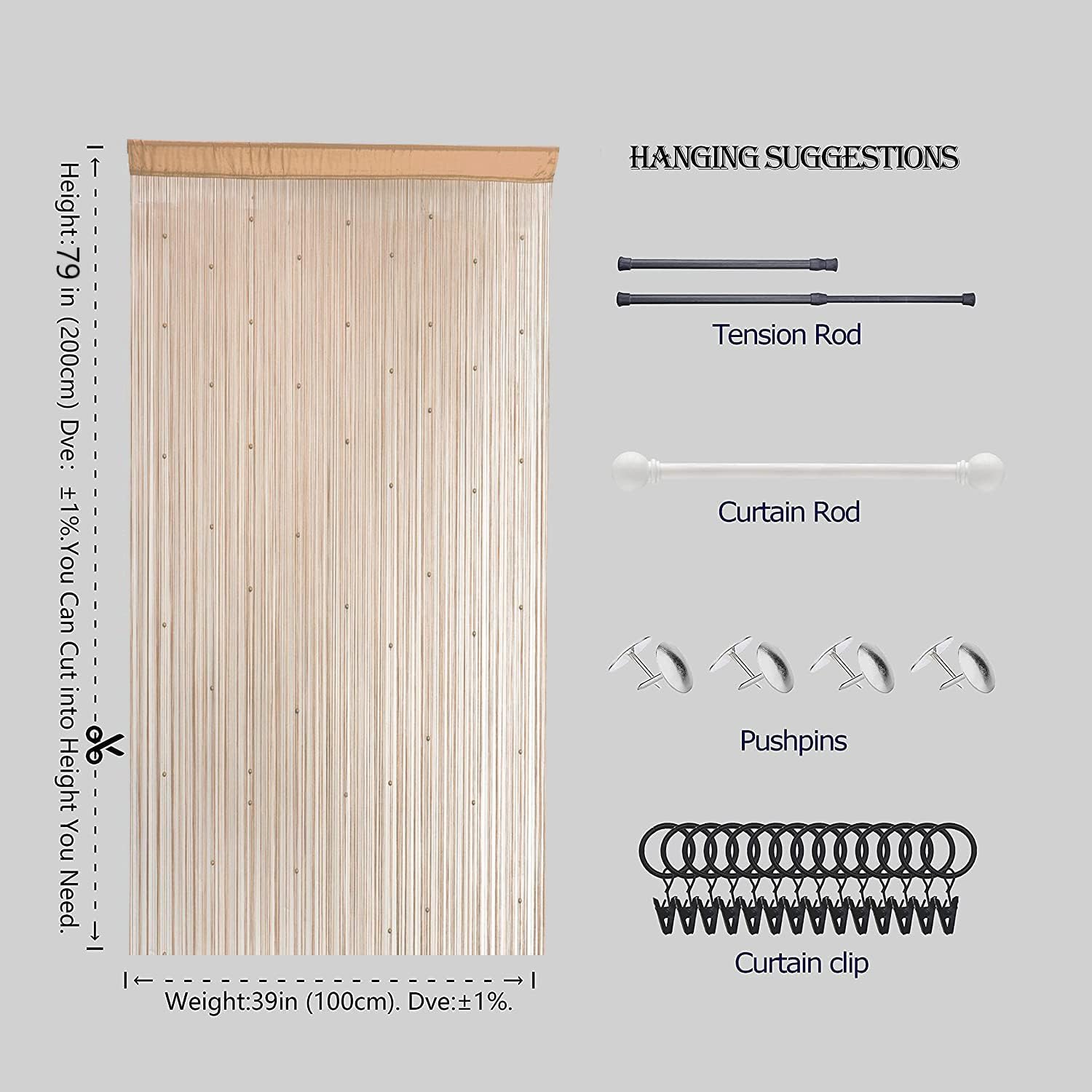 - Easy to install,the bead curtain use telescopic rod to cross the curtain header and hang it up.
