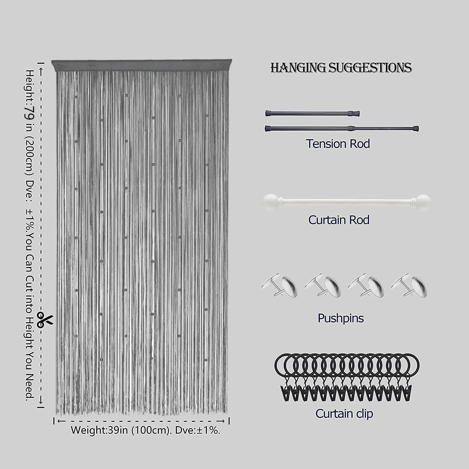 - Width 39inch=100cm,Height 79inch=200cm,If the height is too long,you can cut it directly.