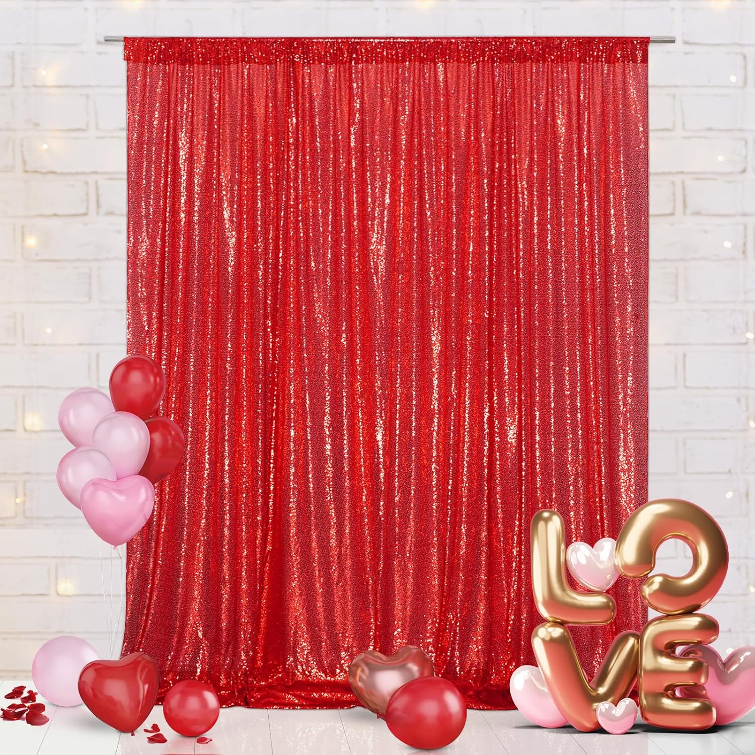 Eternal Beauty Red Sequin Backdrop, 8x8 Ft Glitter Background Curtains for Christmas Shimmer Photography Party Wedding Birthday Back Drop Decor