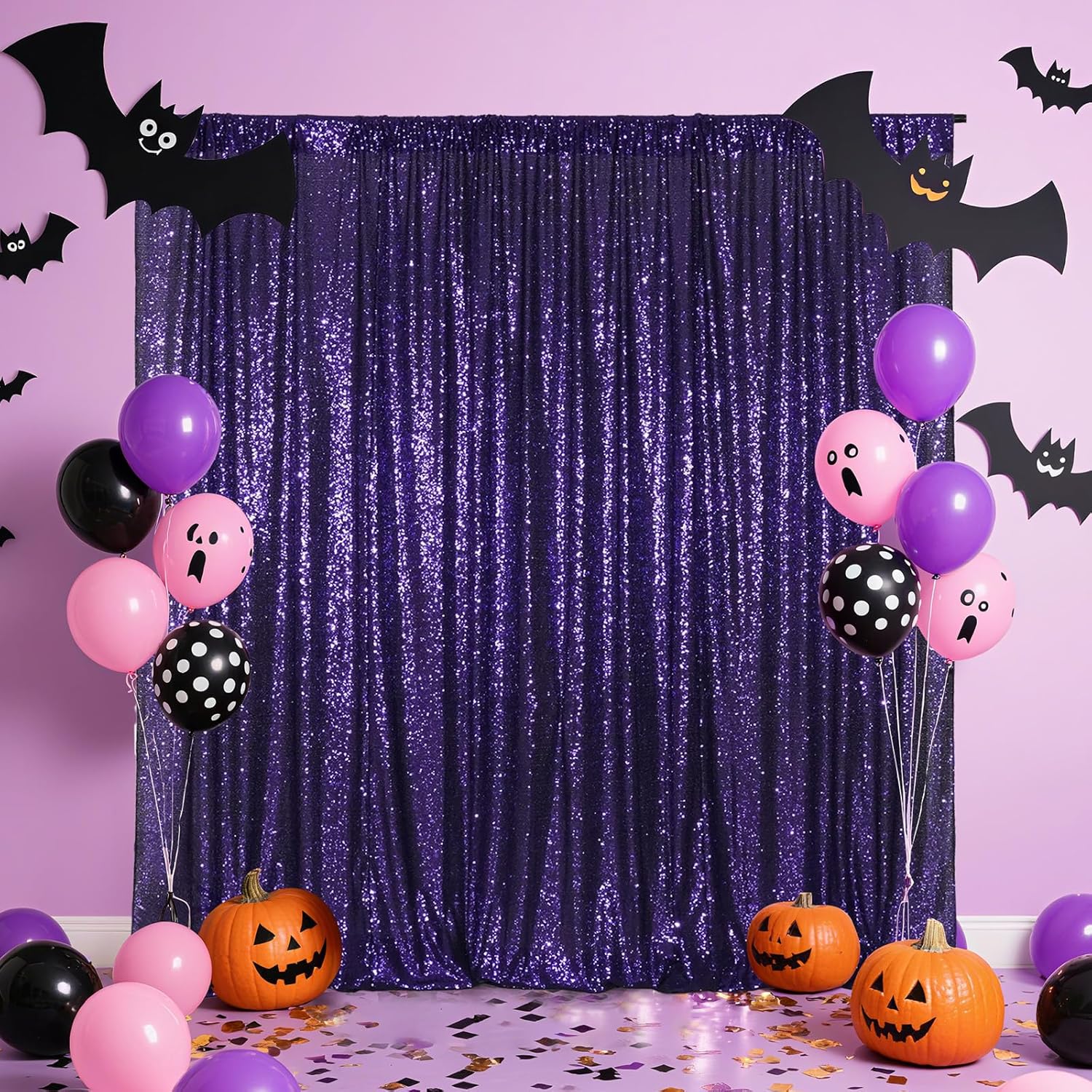 Poise3EHome Purple Sequin Backdrop, 6Ft x 8Ft Glitter Photography Background Curtains for Halloween Party Wedding Birthday Decoration
