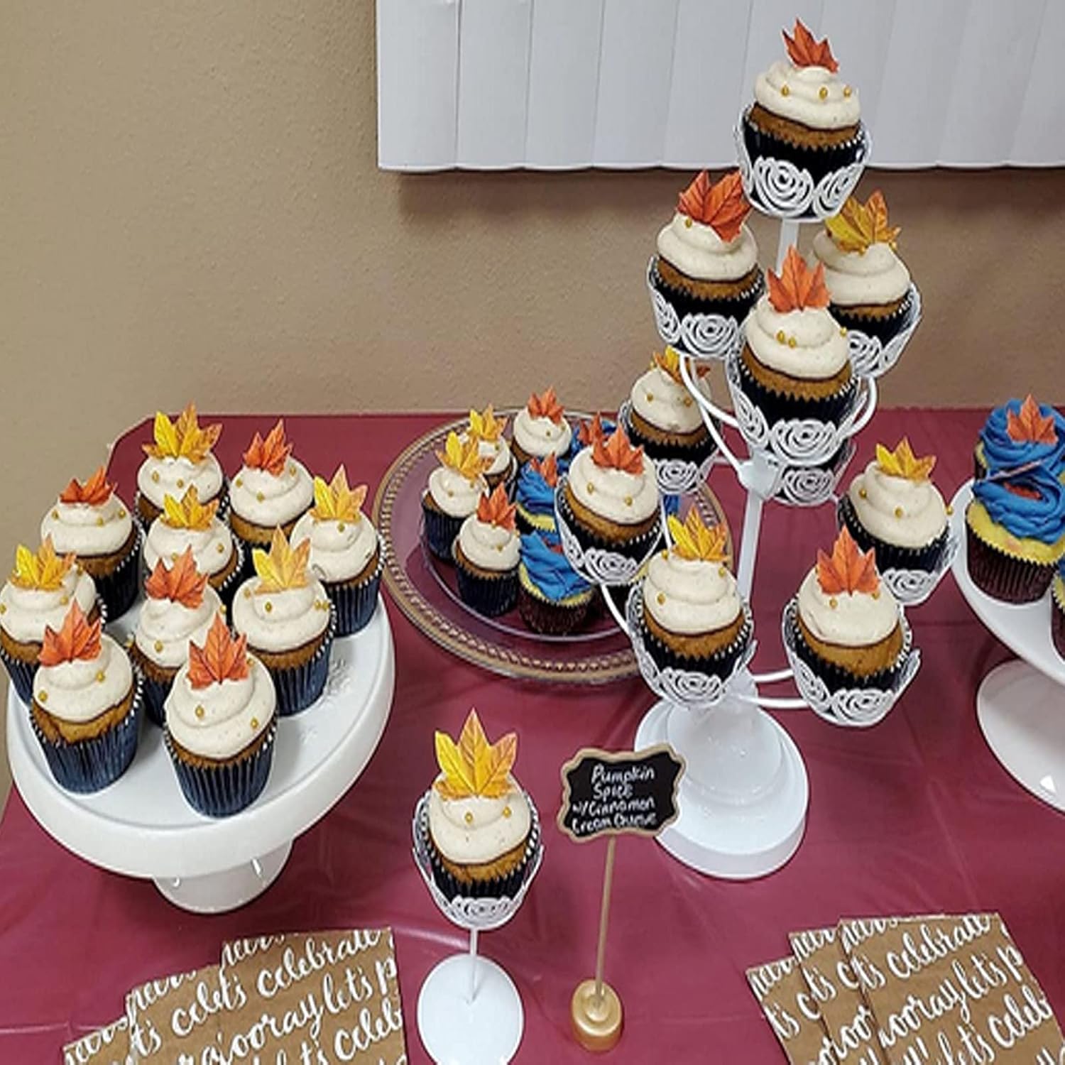 GEORLD Edible Fall Leaves Set of 48 Cake Decorations, Autumn Cupcake Topper 2 Colors