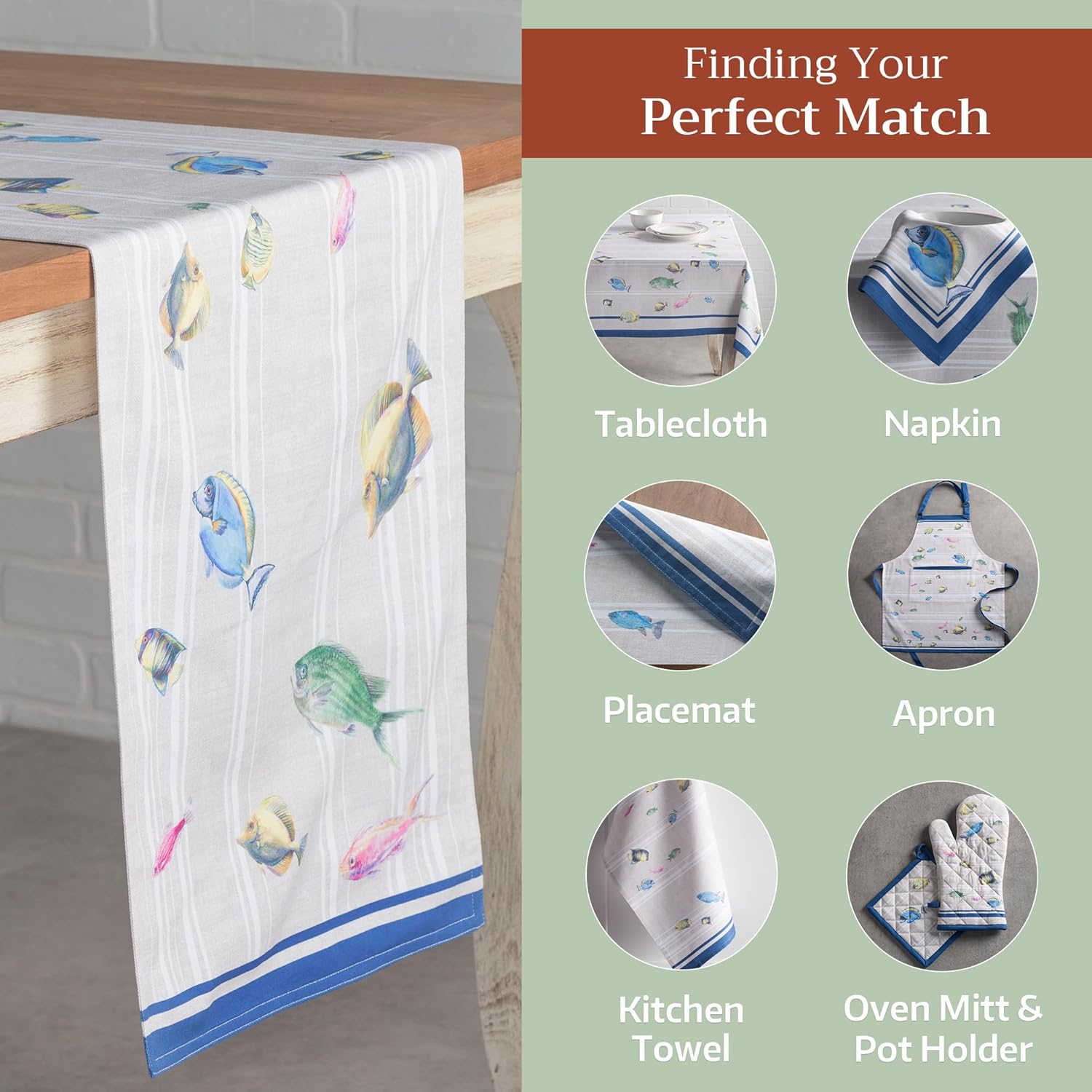 Maison d' Hermine Table Runner 100% Cotton Double Layer Table Runners 108 inches Long Decorative for Home Kitchen Dining Party Baby Shower Wedding Bridal Shower Spring Summer (Poisson, 14.50" x 108")