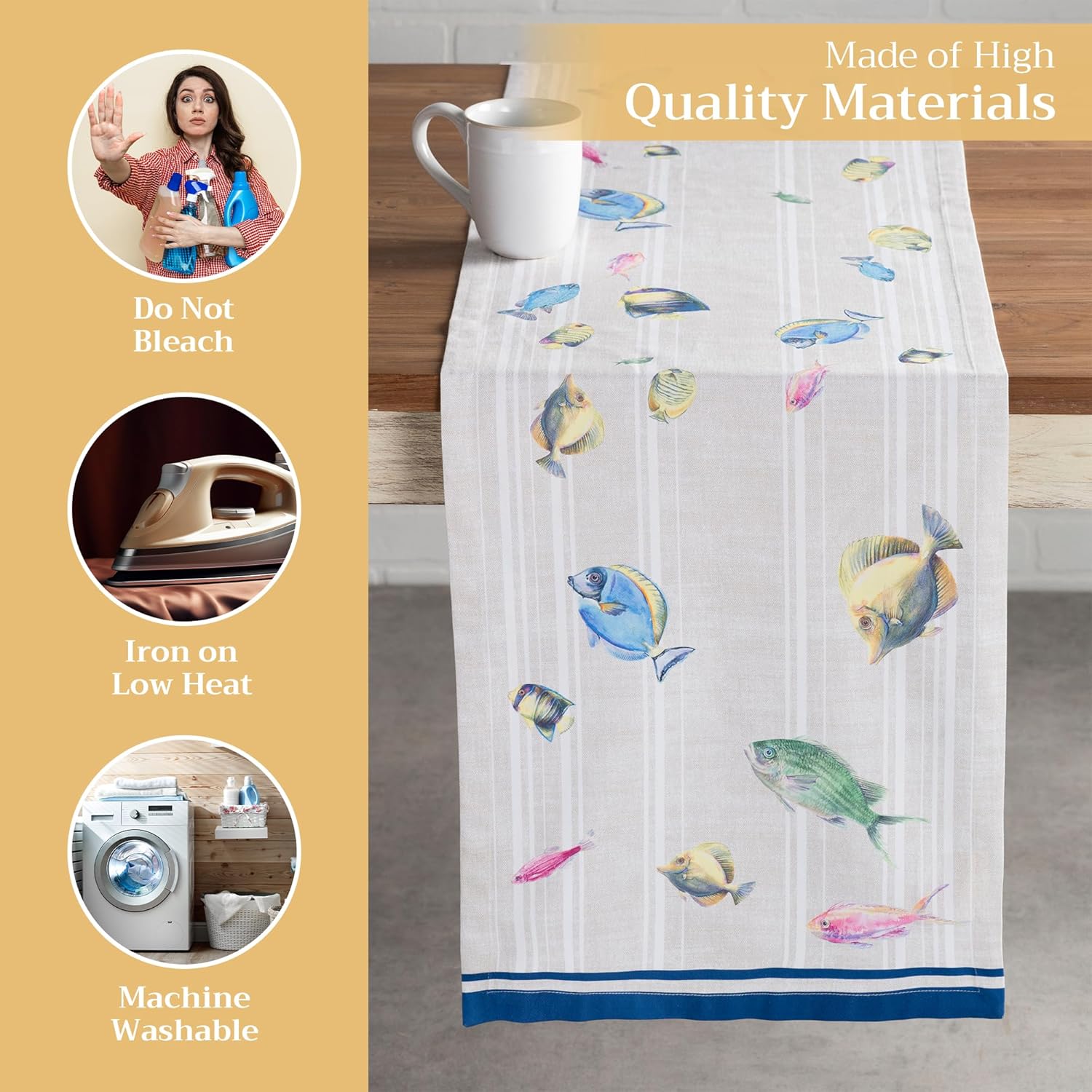 Maison d' Hermine Table Runner 100% Cotton Single Layer Table Runners 108 inches Long Decorative for Home Kitchen Dining Party Baby Shower Wedding Bridal Shower Spring Summer (Poisson, 14.50" x 108")