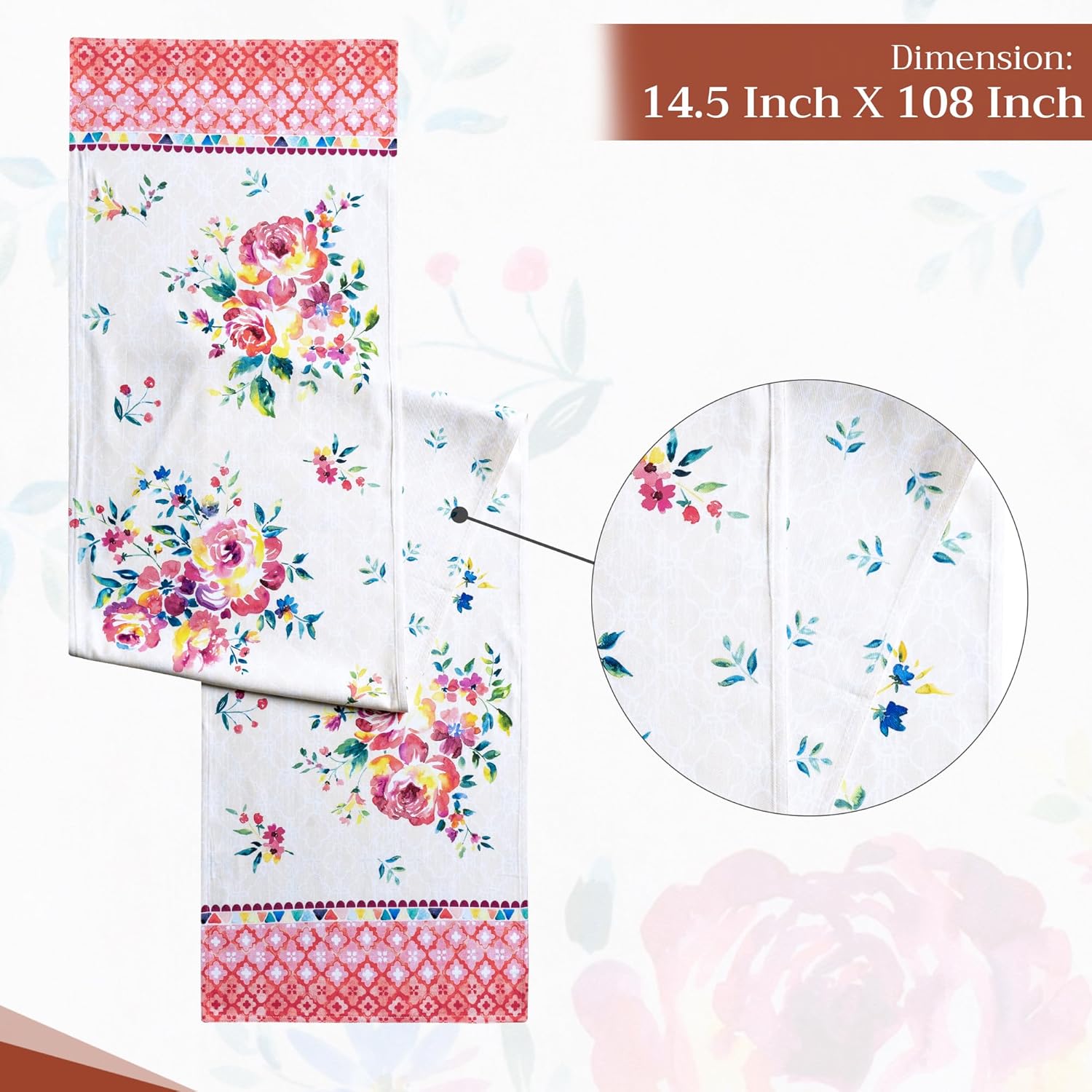 Maison d' Hermine Table Runner 100% Cotton Double Layer Table Runners 108 inches Long Decorative for Home Kitchen Dining Party Wedding Bridal Shower Spring Summer (Rose Garden, 14.50" x 108")
