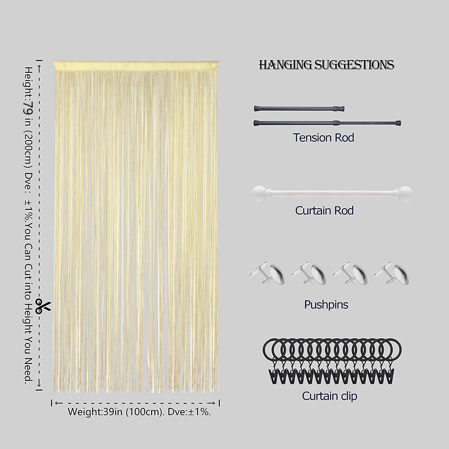 - The door curtains hang beautifully and let light in,meanwhile keep privacy,look pretty and delicate.If you need the strings to be dense,we suggest buy 2 or more.