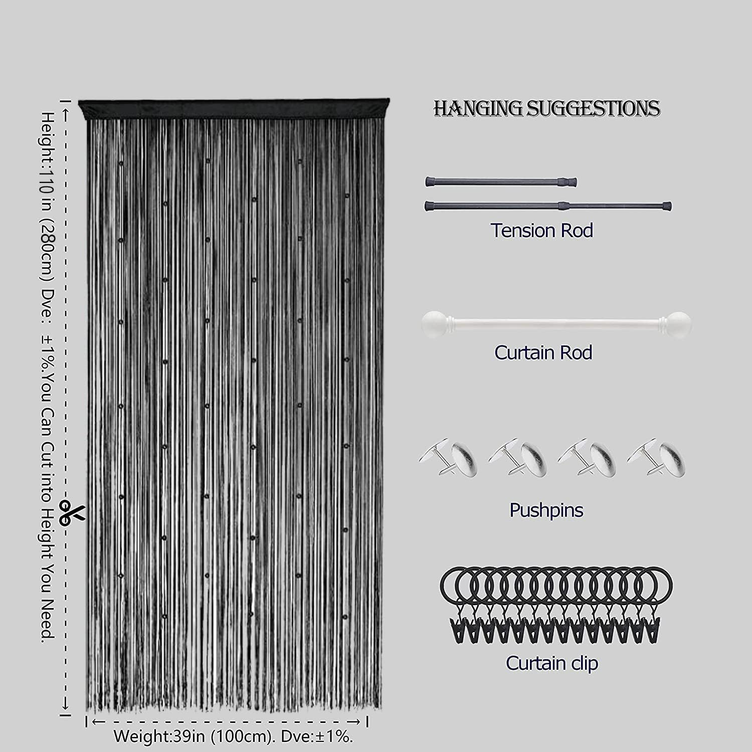 Beaded Doorway Curtain Door Beads Dense String Curtains Fringe Hippie Perfect for Wall Hanging Decor Room Divider Privacy Doors Window Closet Doorways Decorations (100x280cm,Black)
