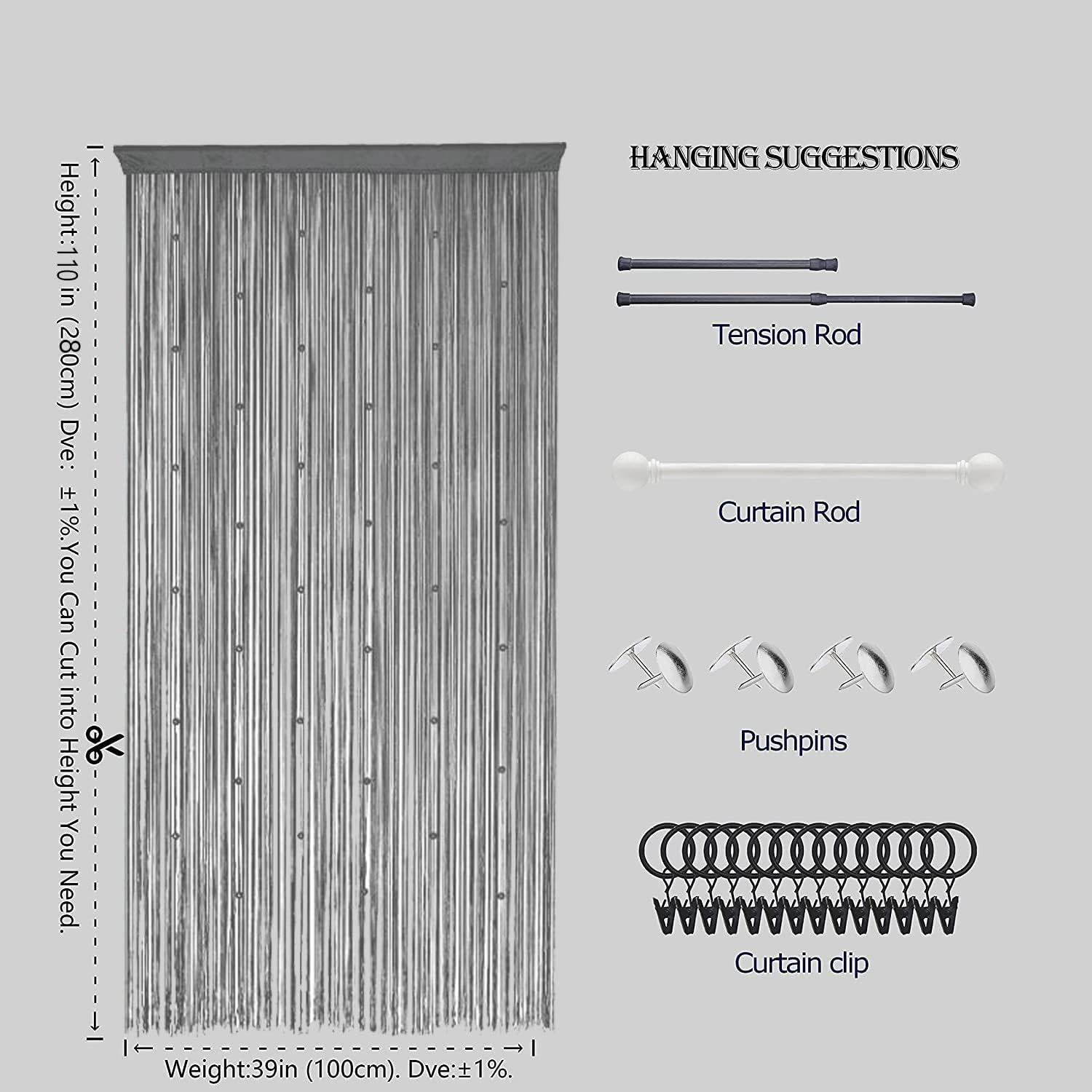 Beaded Doorway Curtain Door Beads Dense String Curtains Fringe Hippie Perfect for Wall Hanging Decor Room Divider Privacy Doors Window Closet Doorways Decorations (100x280cm,Grey)