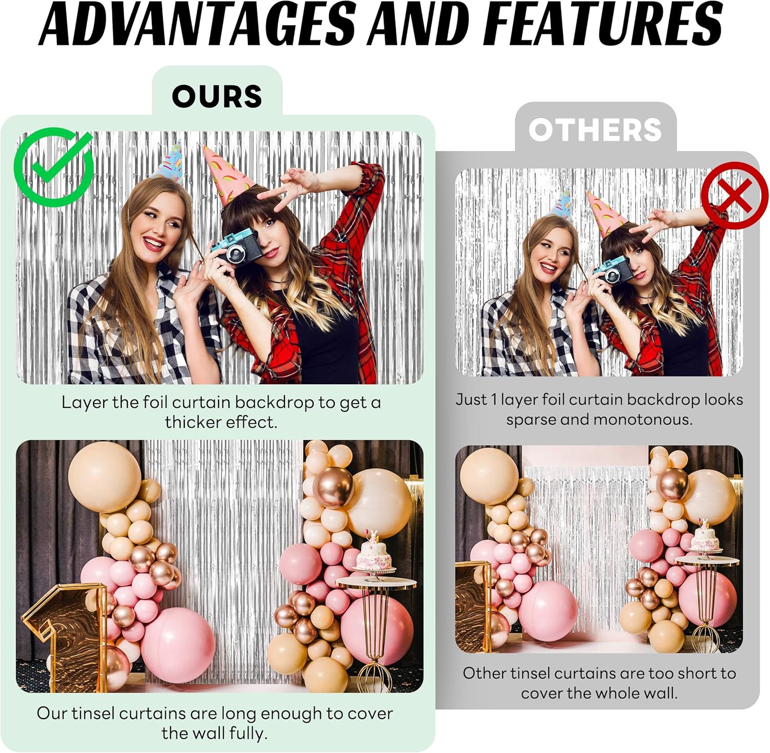 - Fantastic decoration:the beautiful tinsel backdrops are good for serving as party decorations, photography curtains, and so on; you will be surprised at the atmosphere and view they create