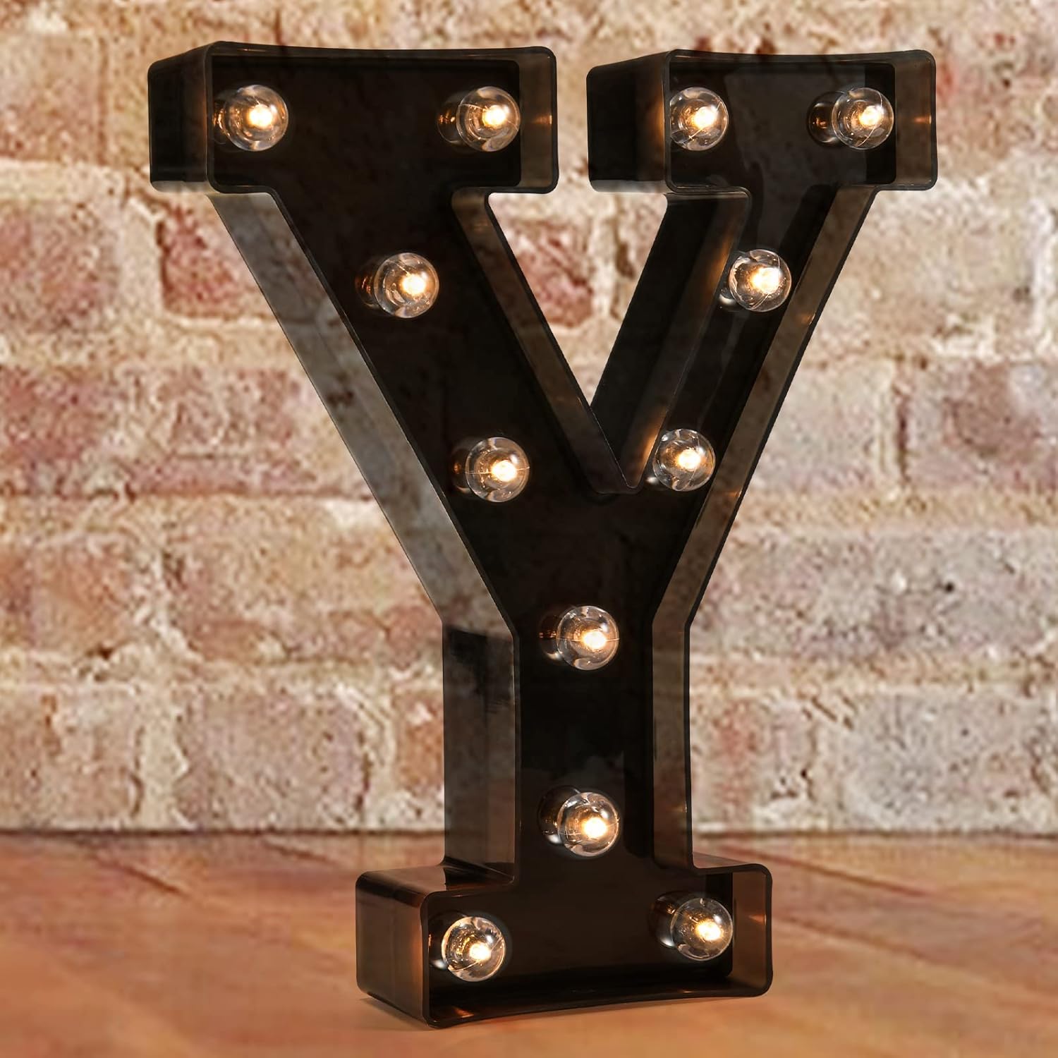 Decorative LED Illuminated Letter Marquee Sign - Alphabet Marquee Letters with Lights For Wedding Birthday Party Christmas Night Light Lamp Home Bar Decoration Y, Black