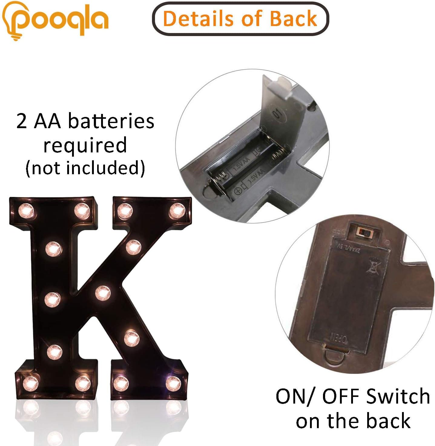 Decorative LED Illuminated Letter Marquee Sign - Alphabet Marquee Letters with Lights For Wedding Birthday Party Christmas Night Light Lamp Home Bar Decoration K, Black