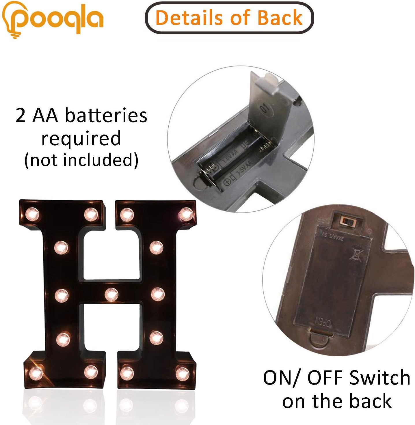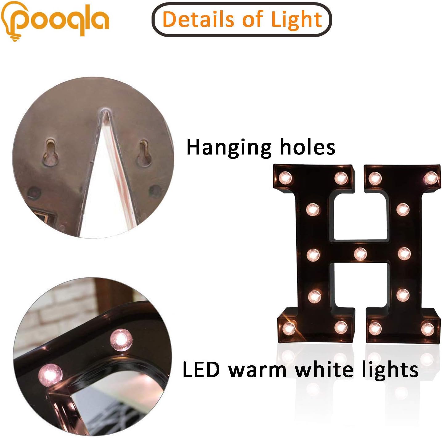 Decorative LED Illuminated Letter Marquee Sign - Alphabet Marquee Letters with Lights For Wedding Birthday Party Christmas Night Light Lamp Home Bar Decoration H, Black
