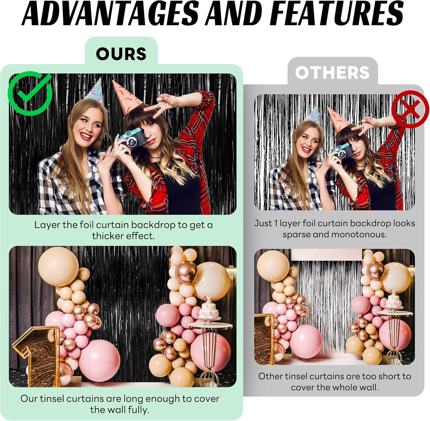 - Package includes:4 pack black foil fringe curtains with exquisite packaging