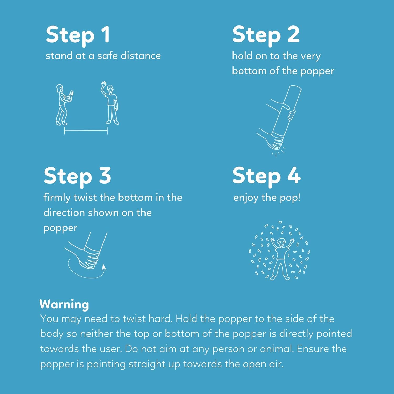 - EASY TO USE AIR POWER! Just a simple twist at the very bottom part of the cannon releases a beautiful display of multicolored confetti. Each cannon is built of a durable tube that is PACKED full of confetti for an exciting pop of confetti that flies up to 25 feet!