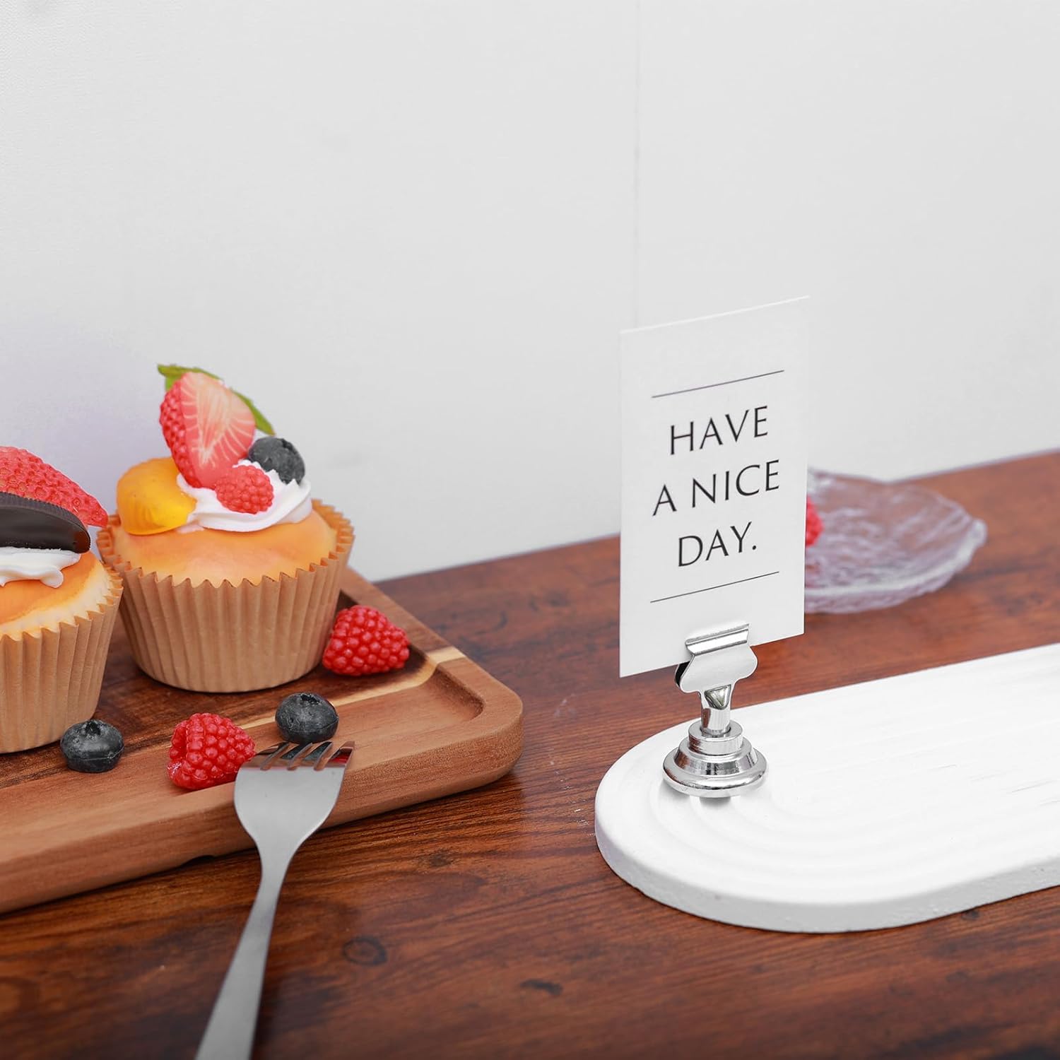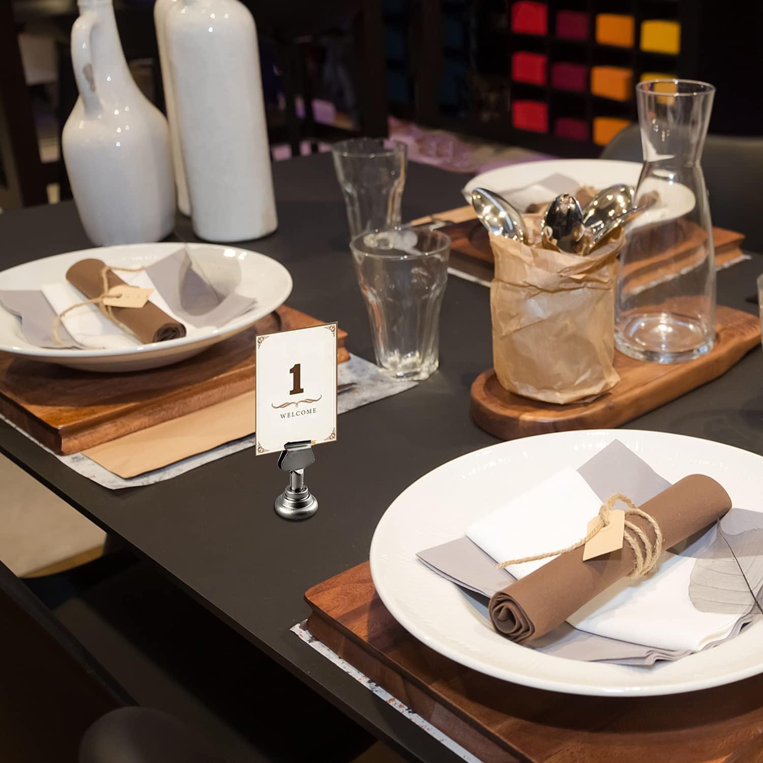- Heavy and sturdy base: Table number holders have wide, solid and sturdy steel base to keep your cards remain in standing position even if the occasion is in outdoor settings, our finely made table card holders won’t fall over to ruin your elegant presentation