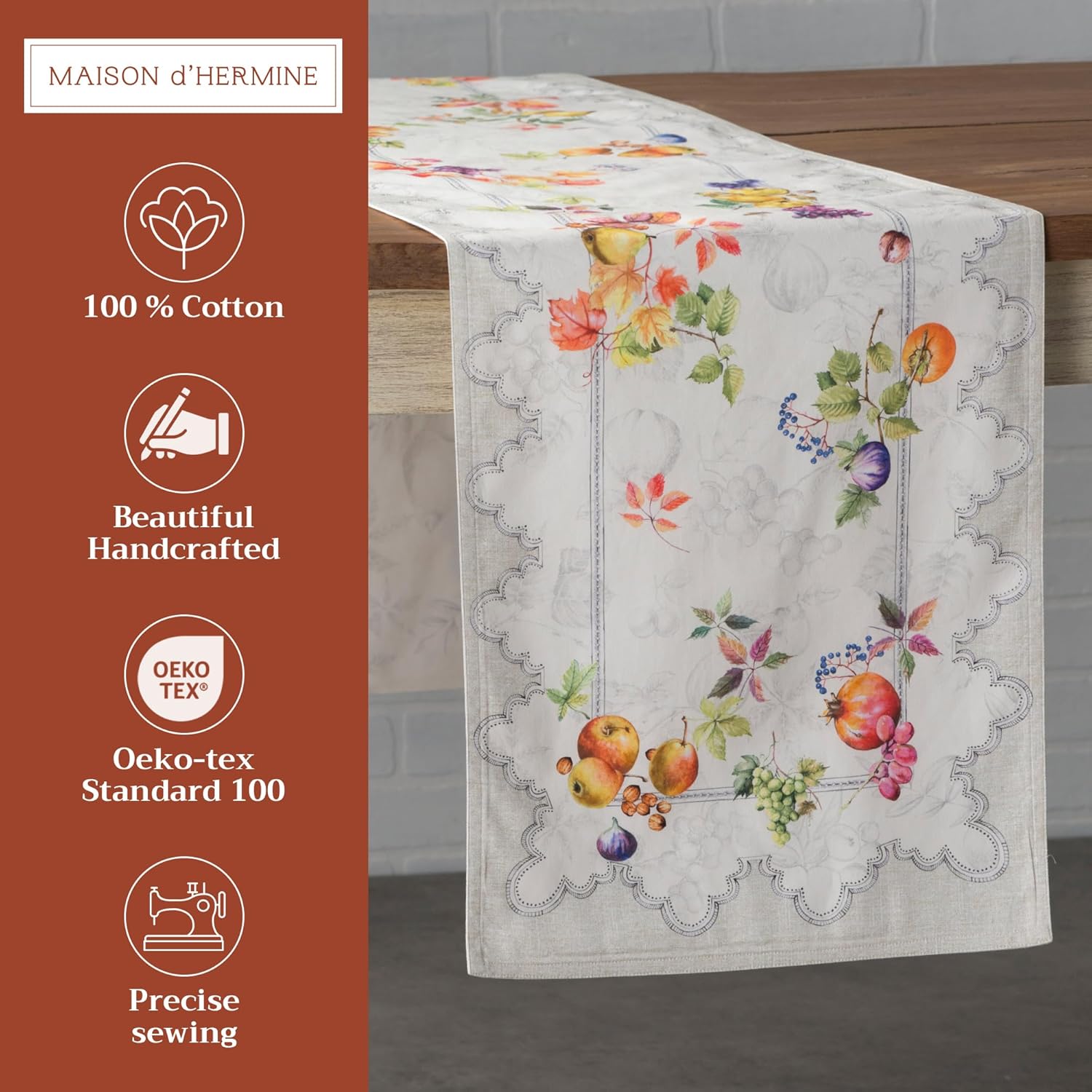 Maison d' Hermine Table Runner 100% Cotton Double Layer Table Runners 72 inches Long for Thanksgiving Christmas Decorations Home Kitchen Dining Party Wedding (Fruit D'Hiver, 14.5" x 72")
