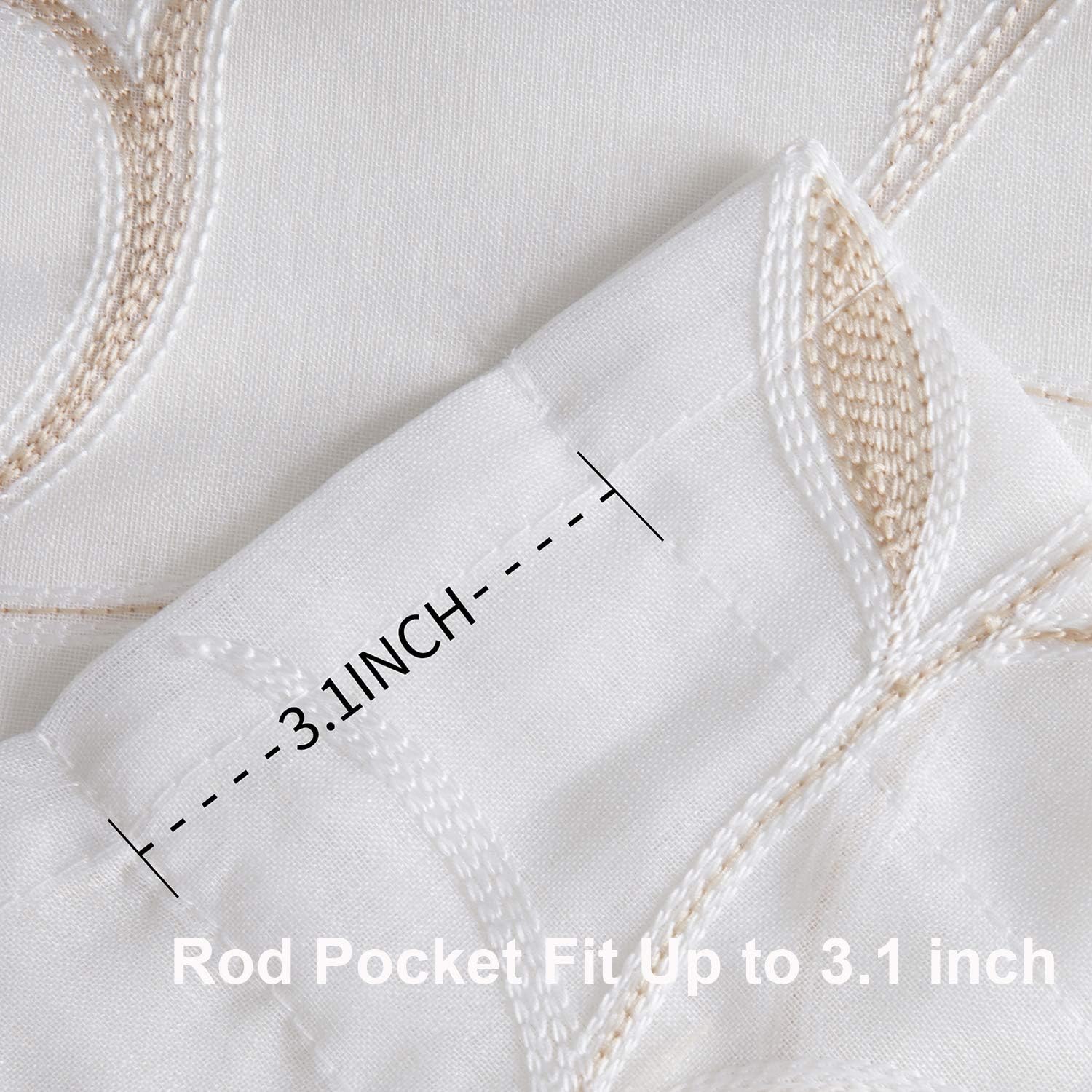 VISIONTEX White Sheer Voile Curtains, Decorative Beige Leaves Embroidery Faux Linen Rod Pocket Window Drapes for Home Kitchen, Living Room and Bedroom 54 x 63 Inch, Set of 2 Curtain Panels