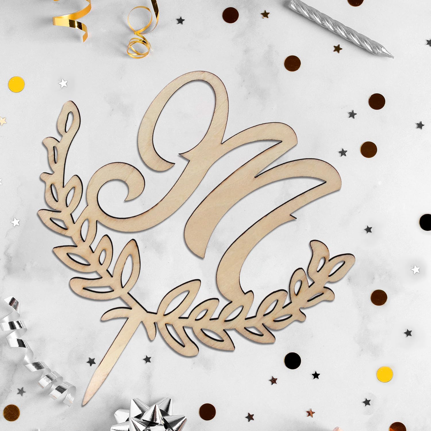 LINGTEER Personalized Inital Letter M Wooden Cake Topper Perfect for Birthday Rustic Wedding Anniversary Party Keepsake Decoration