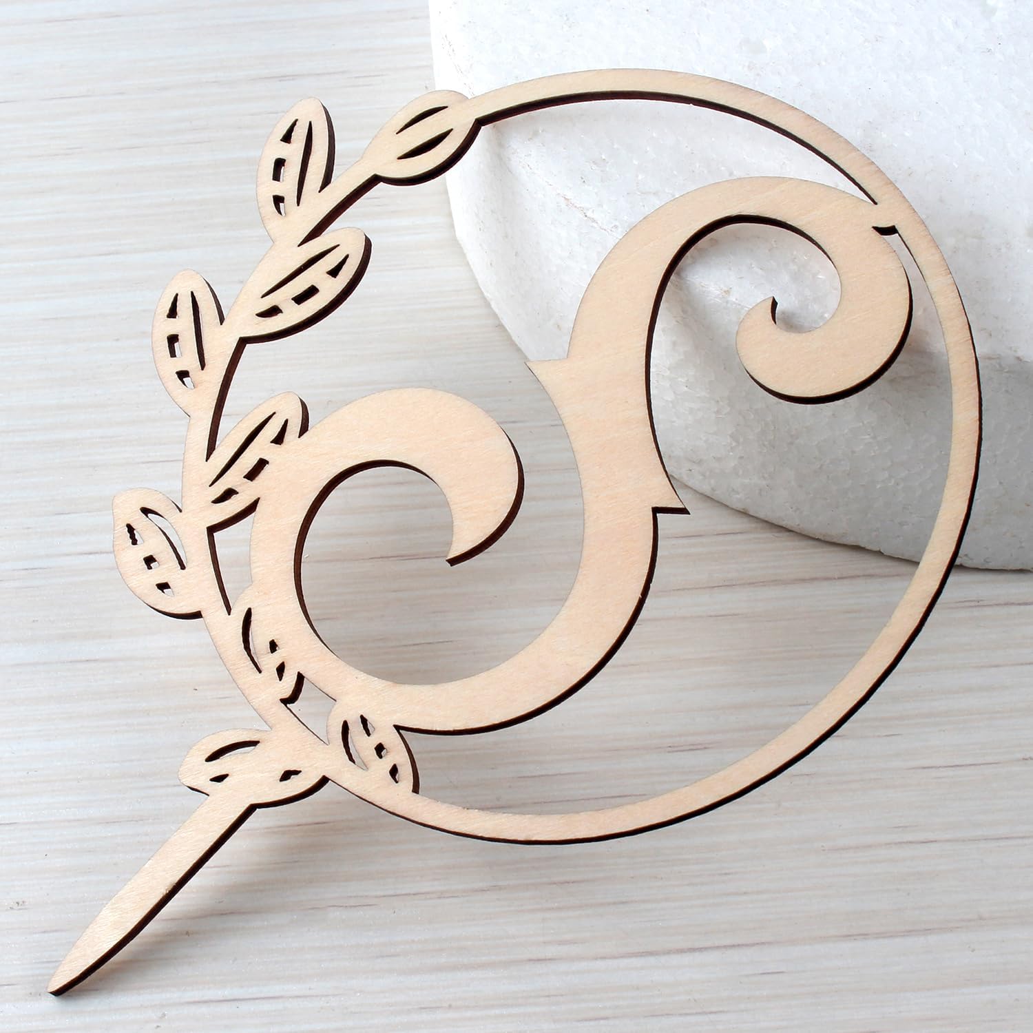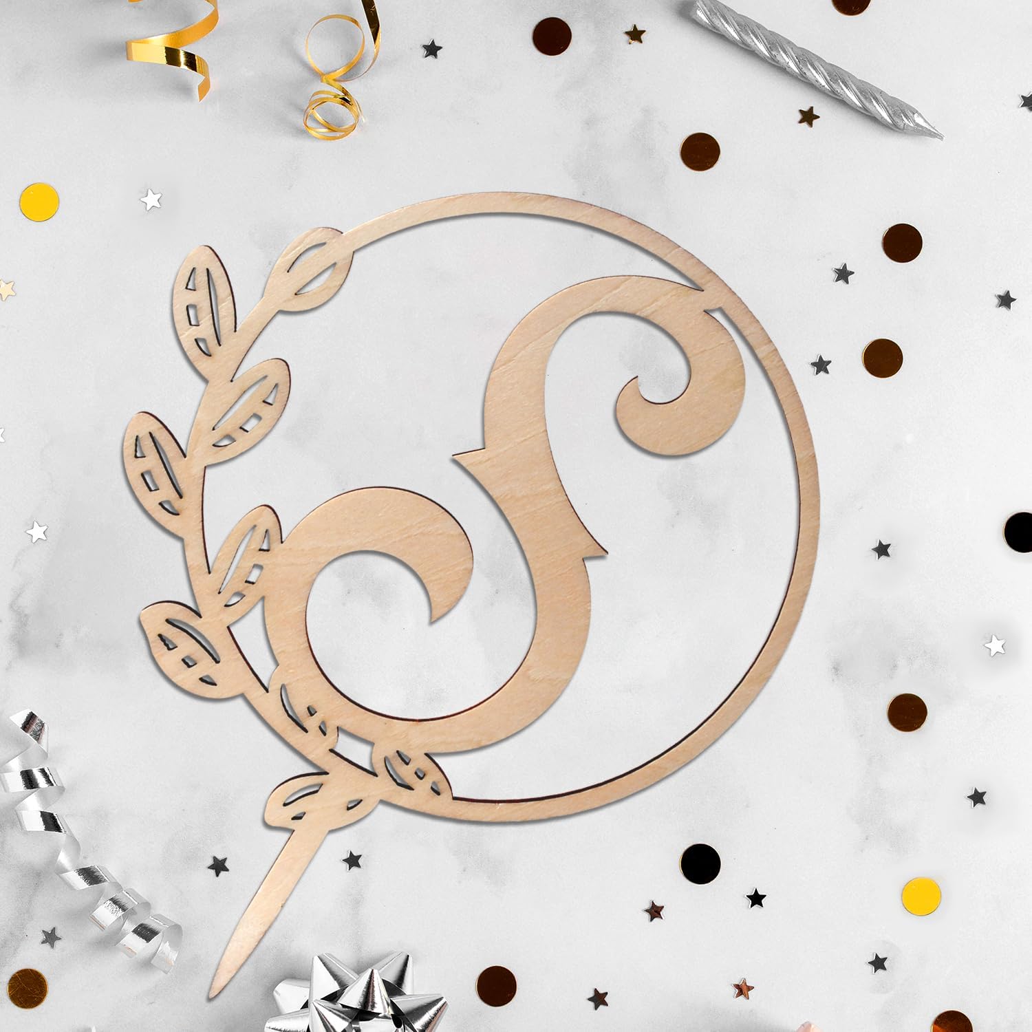 LINGTEER Personalized Inital Letter S Wooden Cake Topper Perfect for Birthday Rustic Wedding Anniversary Party Keepsake Decoration
