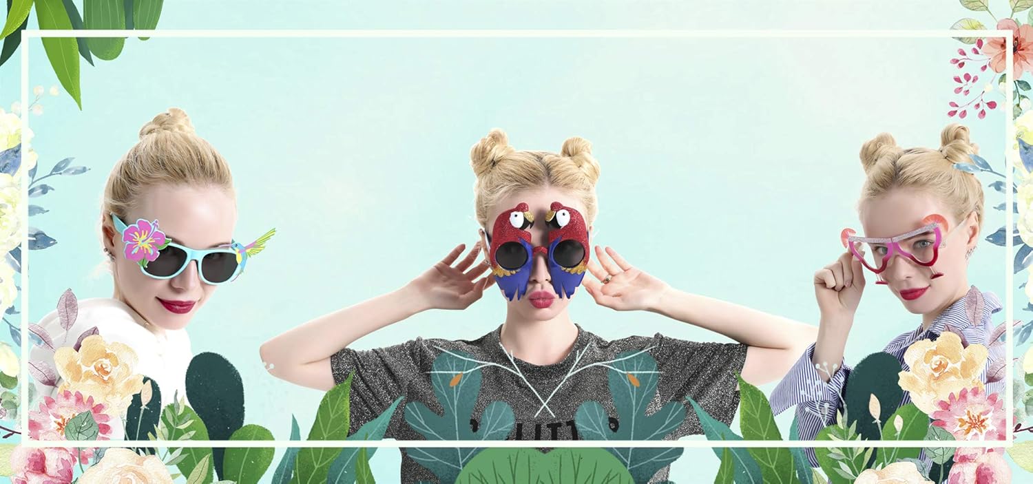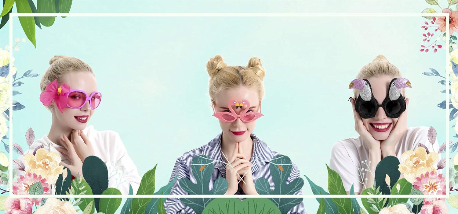 - 【Special for Luau Party Ideas】These glasses are an awesome gift for Luau party, includes 9 pairs different Luau-themed glasses. Perfect fancy dress accessory or give friends away as a sweet gag gift! One in a perfect size for both boys and girls. They will instantly set your party apart from the others.