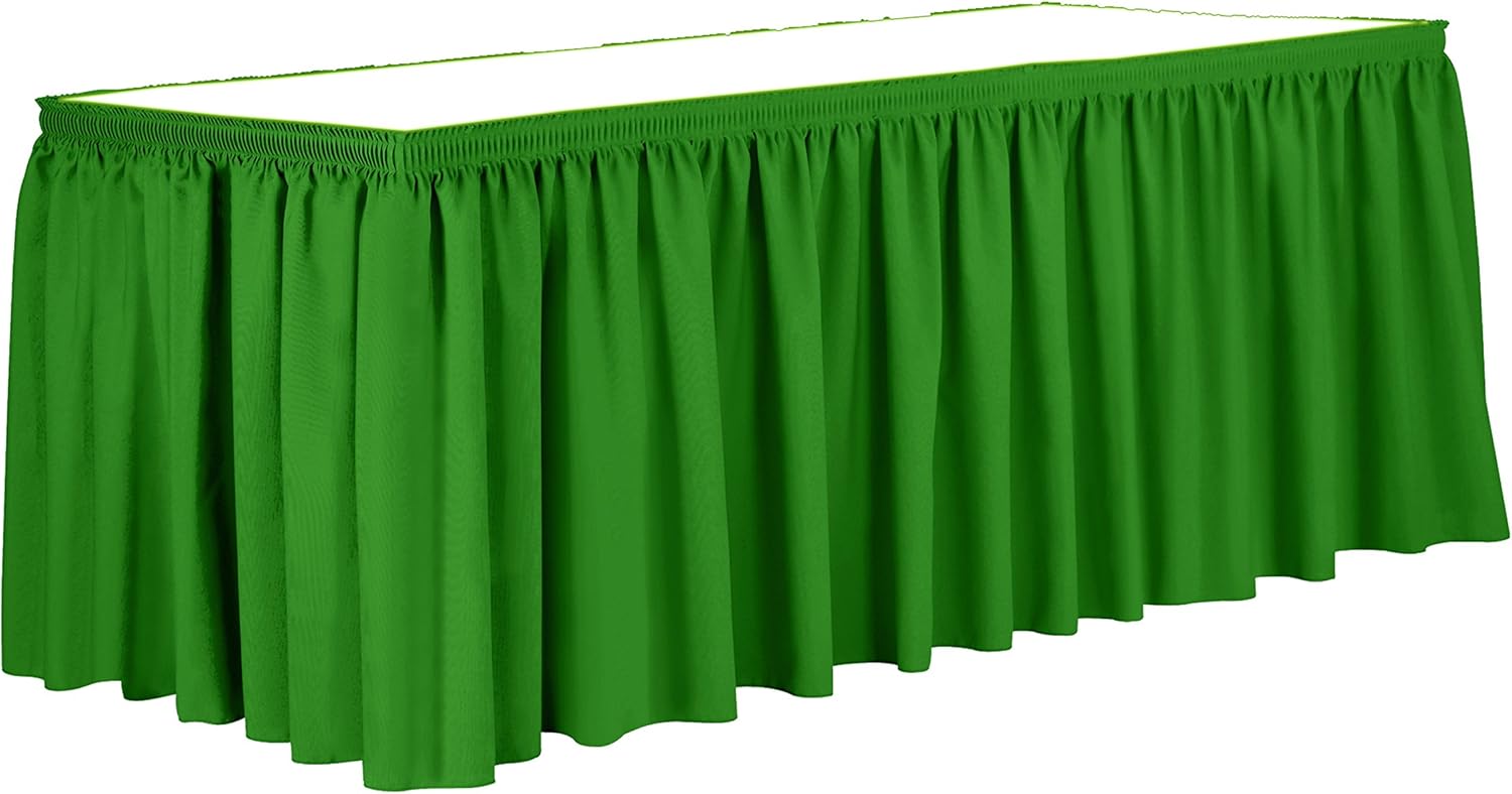 Ultimate Textile Pleat Polyester Fabric Table Skirt - Machine Washable Flame Resistant with Clips for Events, Weddings & Trade Shows, Cut & Sewn in Paterson, NJ - Kelly, 17' Shirred Pleat