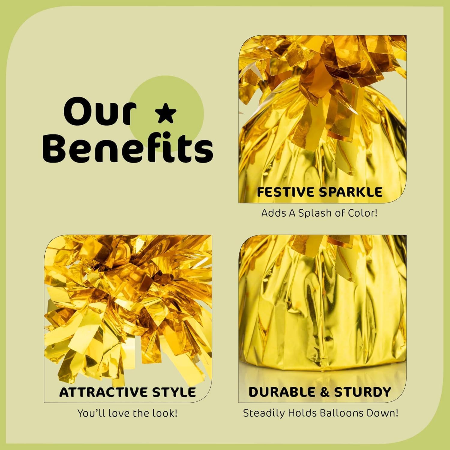 Gold Balloon Weights, Heavy Balloon Weight Pack of 12 Metallic Foil Weights for Balloons, Birthday Party & Wedding Table Centerpiece Ballon Weight, 4.8’’ DIY Ballon Weights for Helium Balloons