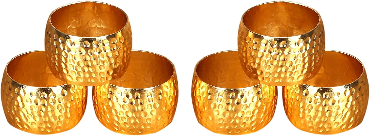 Metal Napkin Rings Set of 6 – Handmade Curved Napkin Holders in Shimmer Gold, Elegant Table Décor for Weddings, Dinner Parties, Family Gatherings & Everyday Use