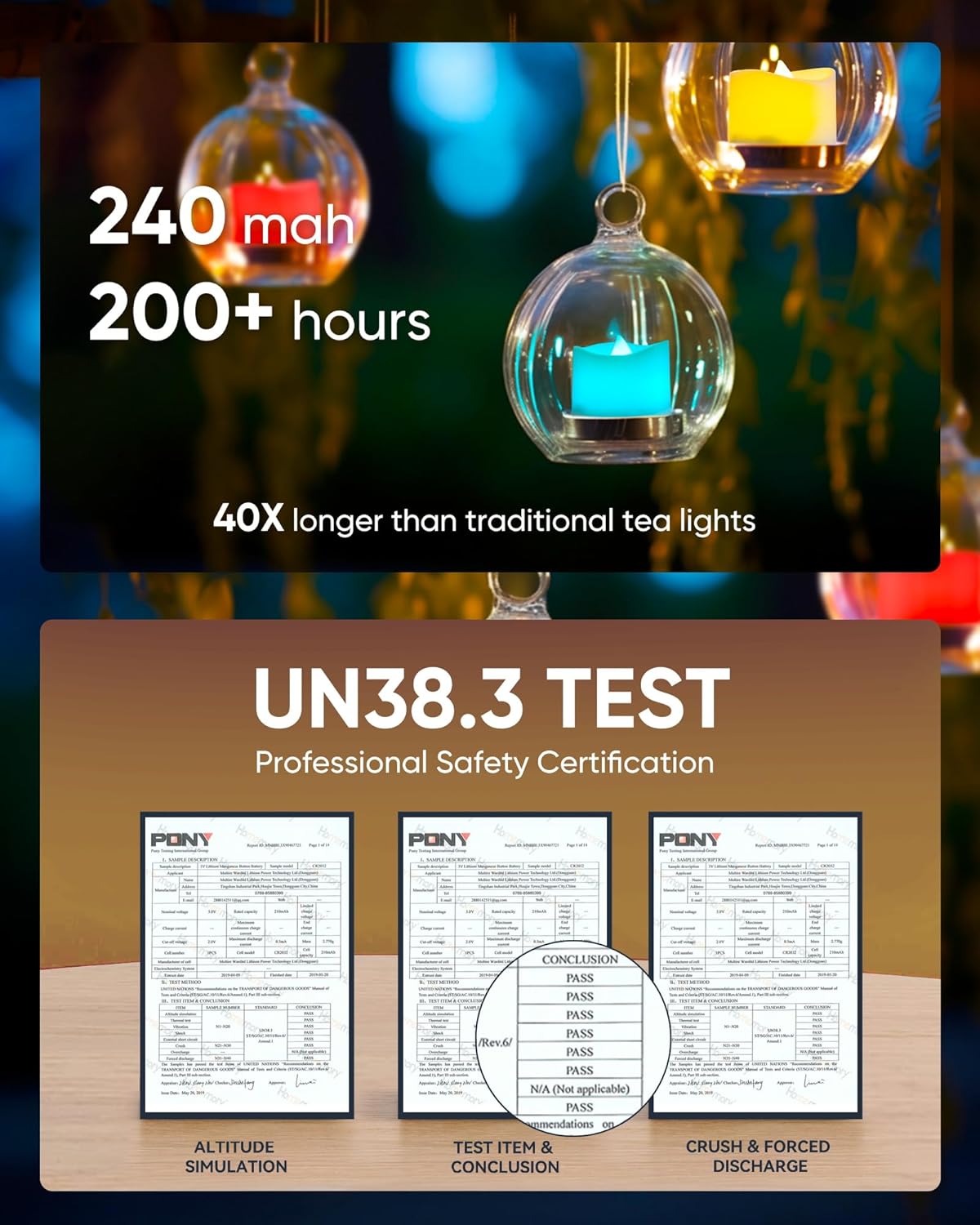 - RELIABLE & SECURE: Homemory LED tea lights are tested rigorously, ensuring their reliability. With (UN38.8) internationally certified batteries and healthy polypropylene materials, plus a secure battery cap design, we care about your safety