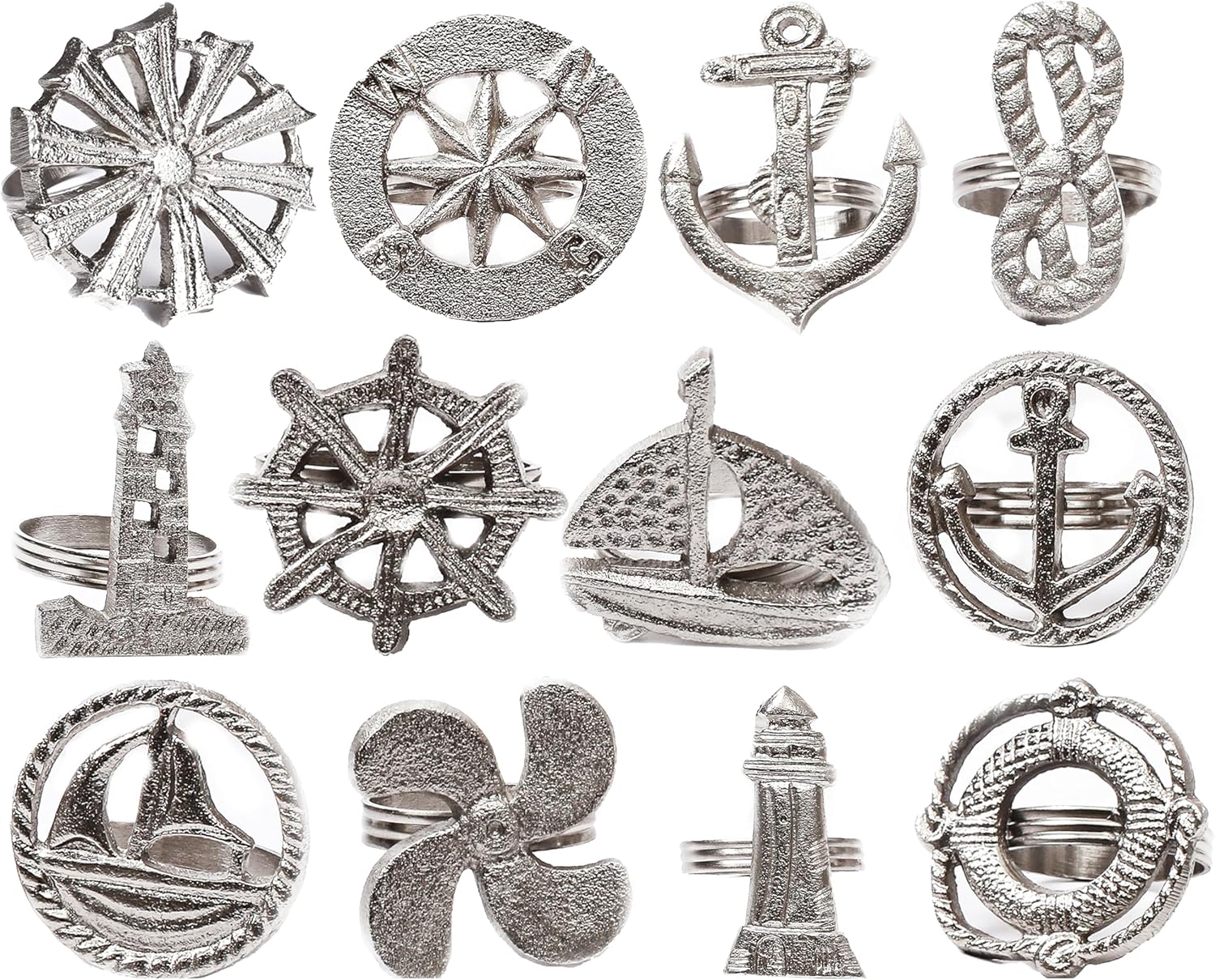 Elegant Napkin Rings Set of 12 - Crafted Lightweight with Antique Finish, Ideal Décor for Weddings, Family Gatherings, Formal Dinners, Banquets & Everyday Dining (Silver) - ALPHA Living HOME
