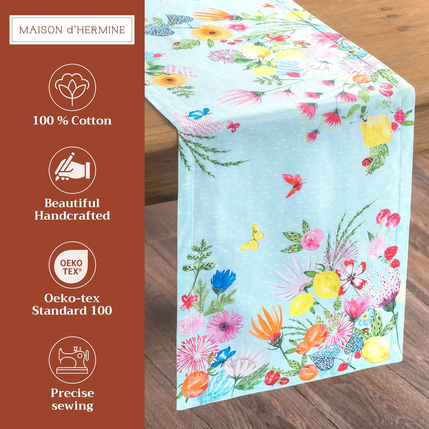 - Unique design: Each table runners features watercolor artwork inspired by traditional European motifs, with intricate details and vibrant hues. Designed in Europe and made in India, it captures the warmth and elegance of artisan-crafted décor.