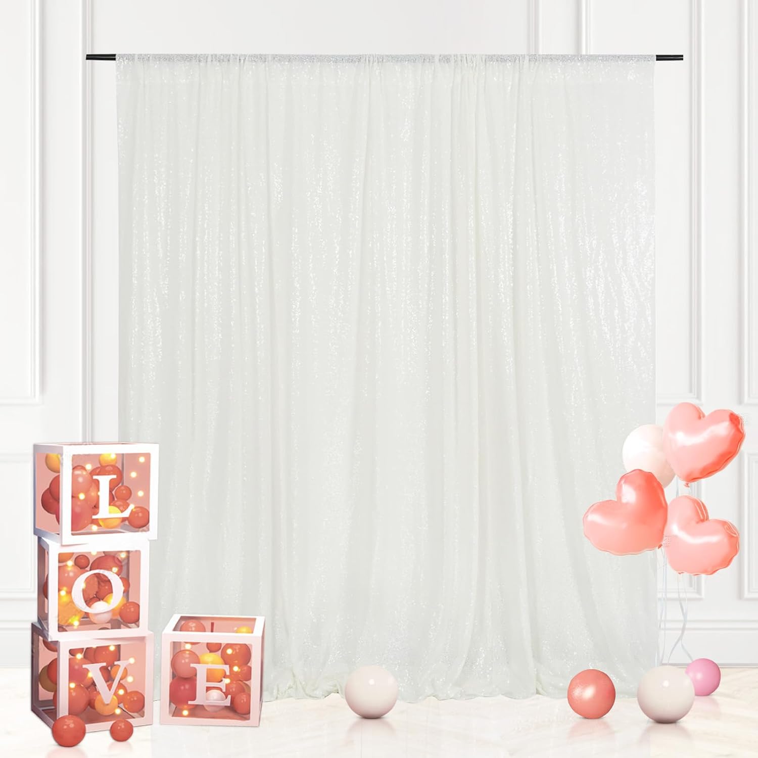 Eternal Beauty White Sequin Backdrop, 8x8 Ft Glitter Background Curtains for Christmas Shimmer Photography Party Wedding Birthday Back Drop Decor
