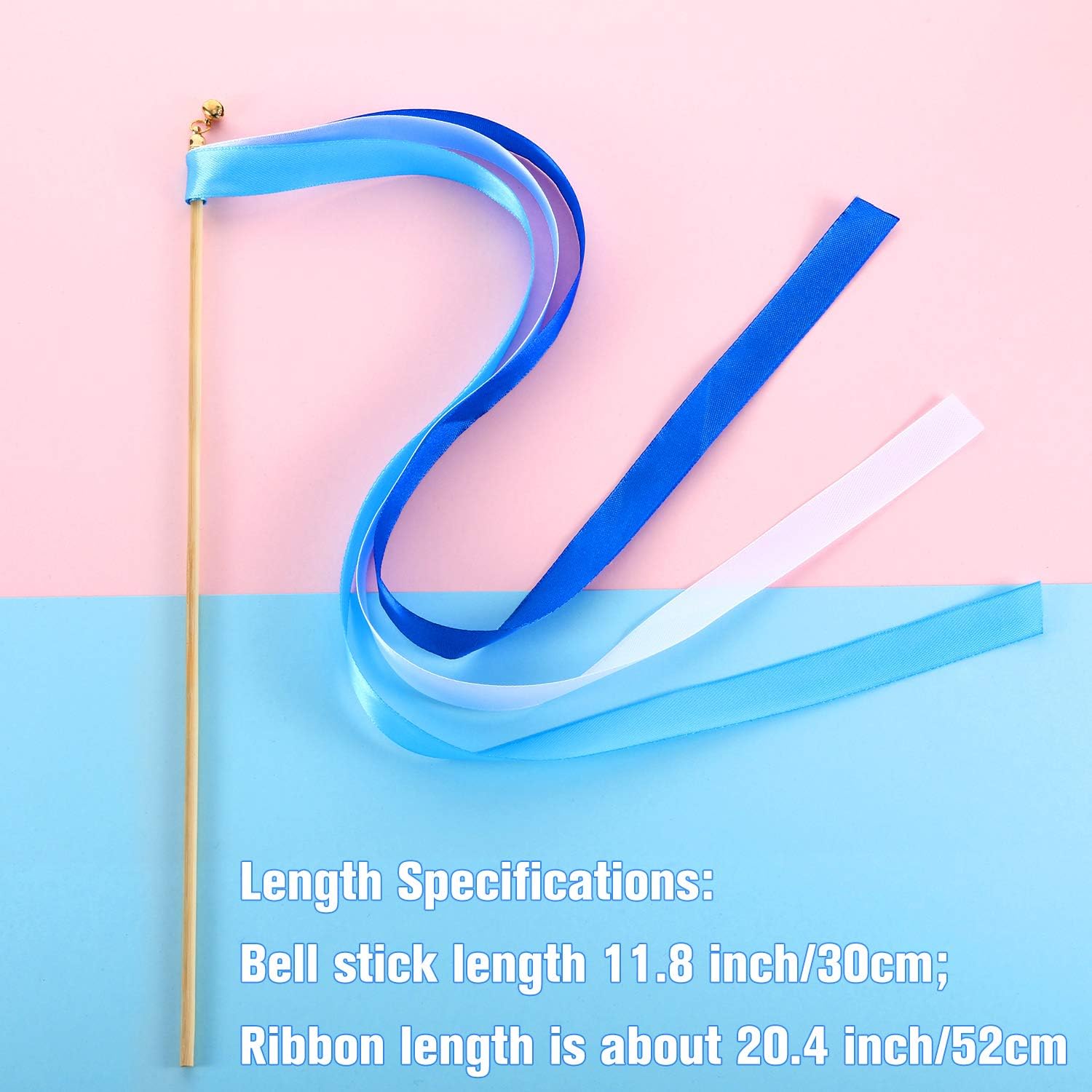Boao 40 Pieces Mixed Color Ribbon Sticks with Bell, Ribbon Sticks for Stick Party, Streamers for Wedding Birthday Party Celebration Baby Shower Favors(Blue)